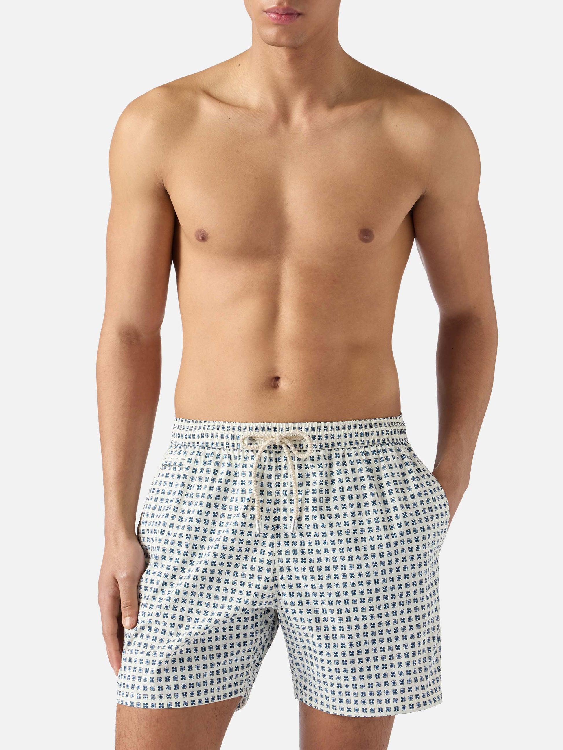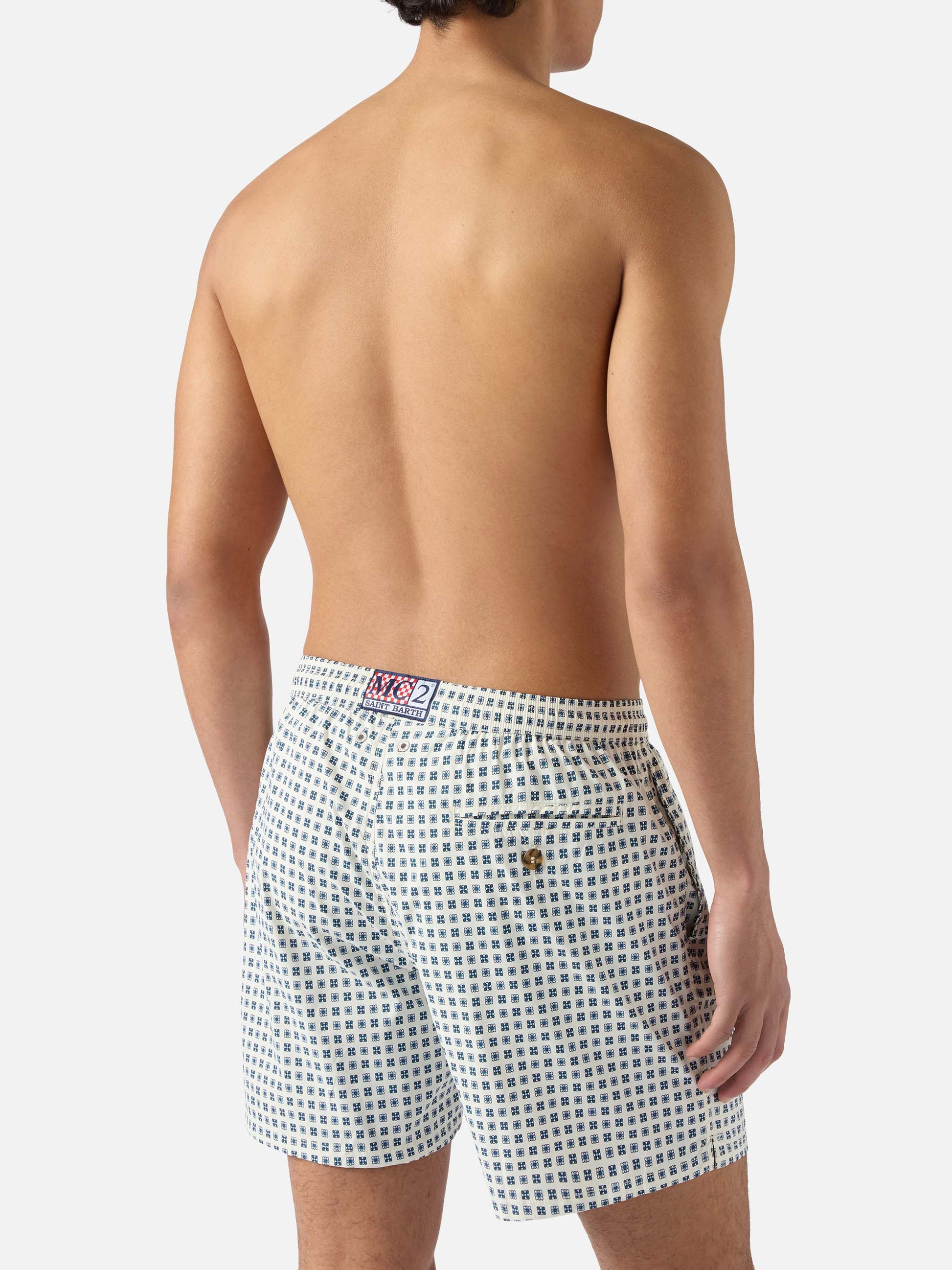Costume mare Lighting Micro bianco con stampa geometrica all-over