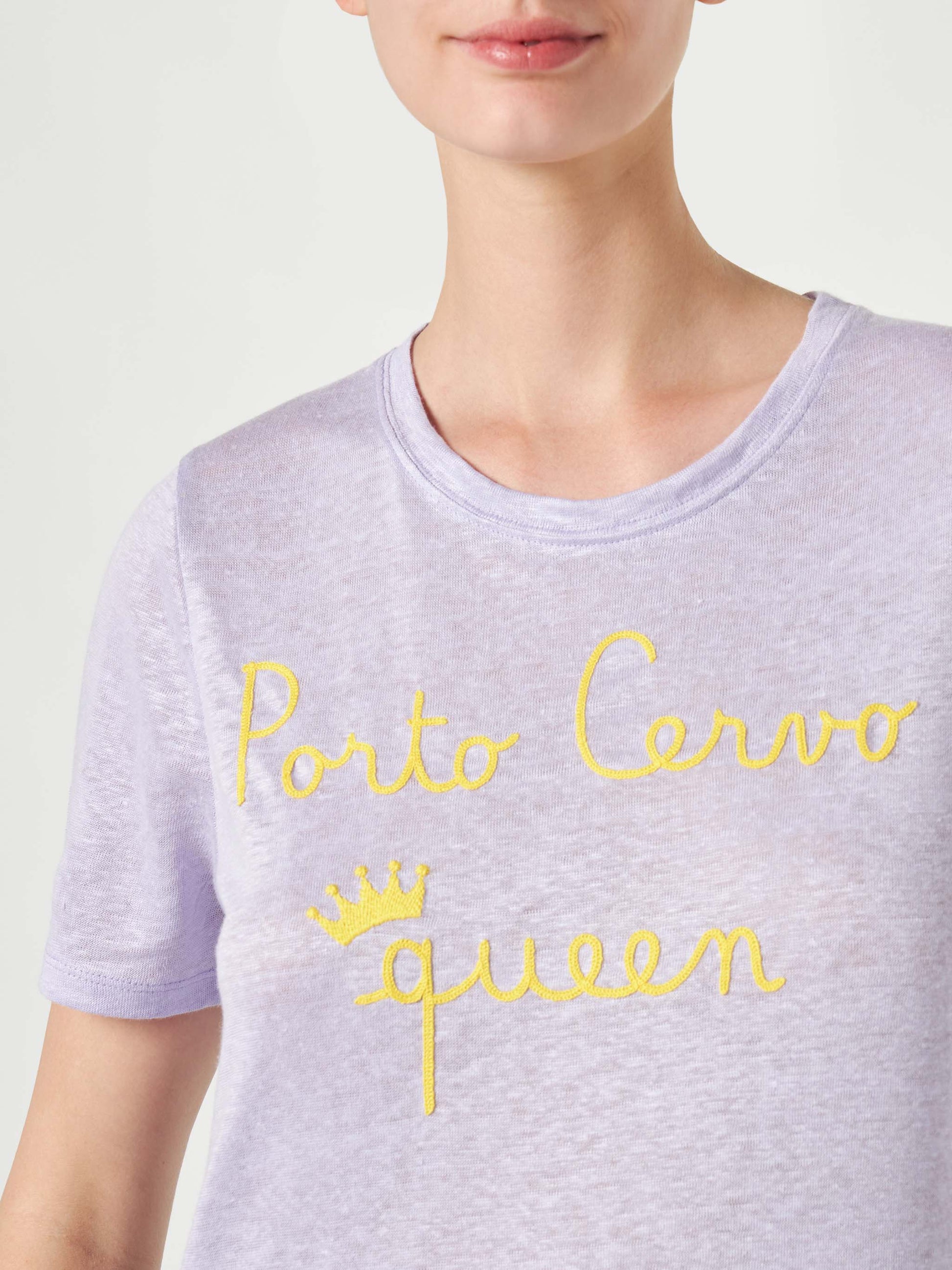 T-shirt in lino con ricamo Porto Cervo Queen