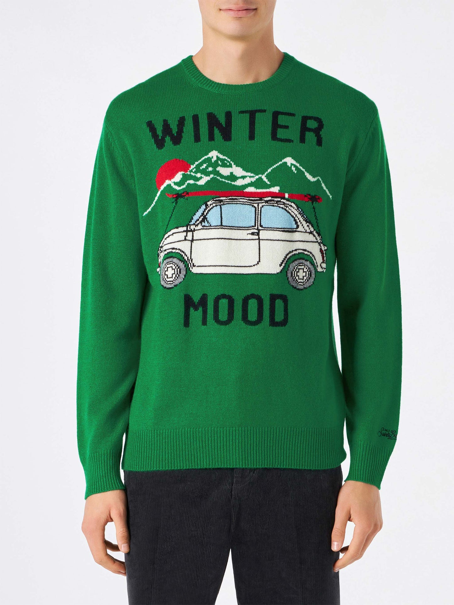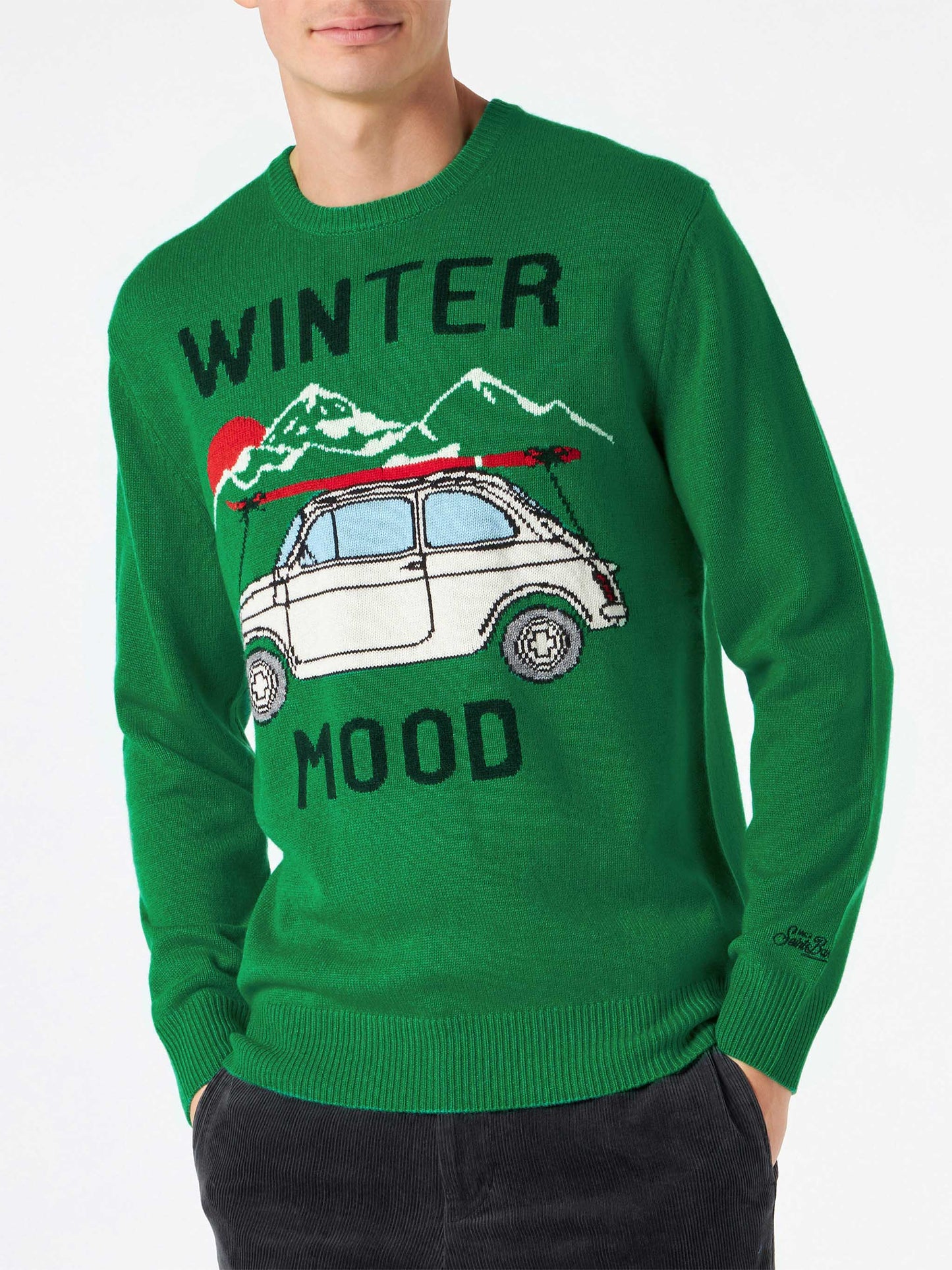 Man cashmere blend sweater with Fiat 500 jacquard | FIAT 500 SPECIAL EDITION - MC2 Saint Barth