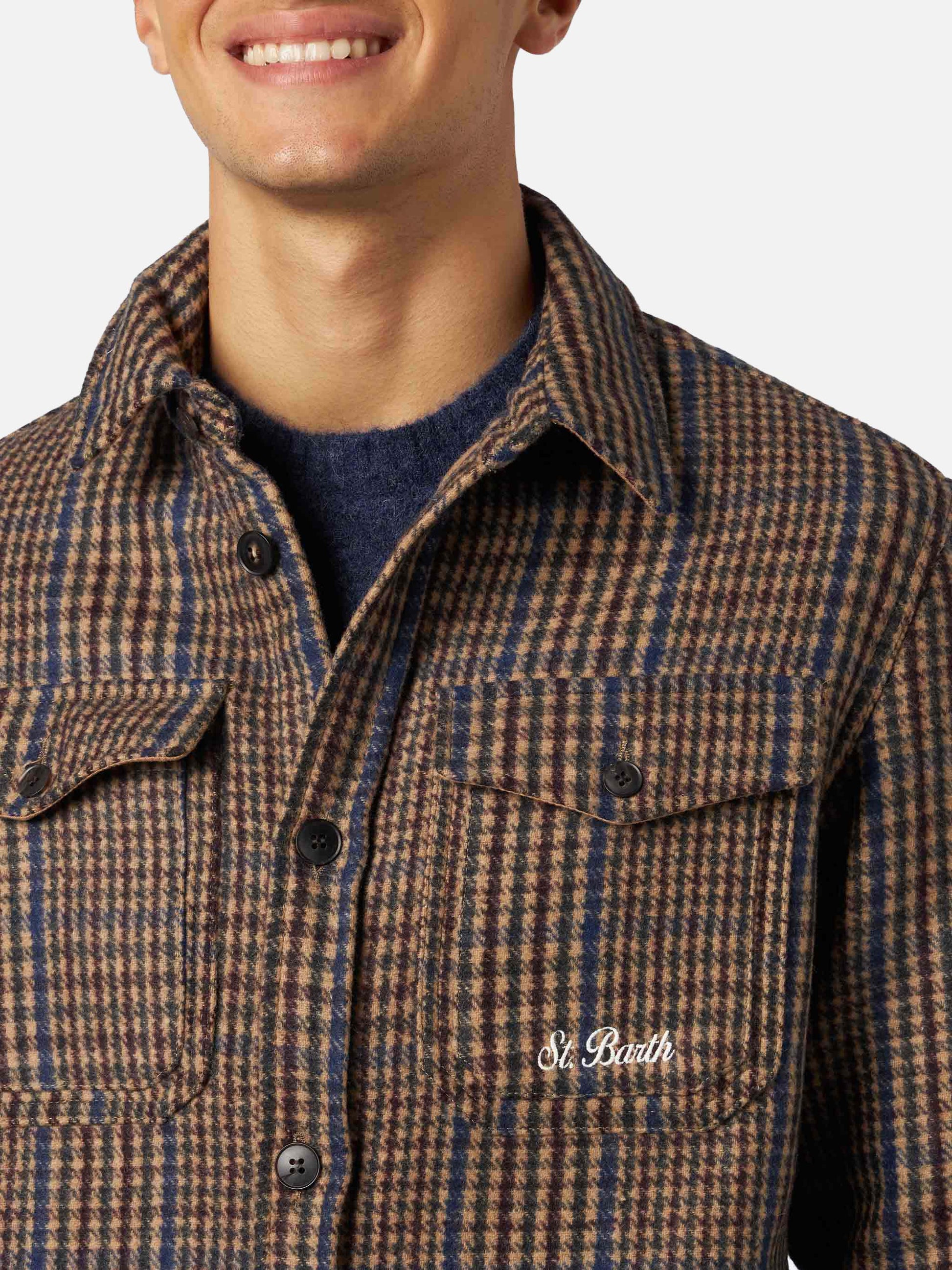Camicia da uomo in Principe di Galles di lana con tasche e toppe
