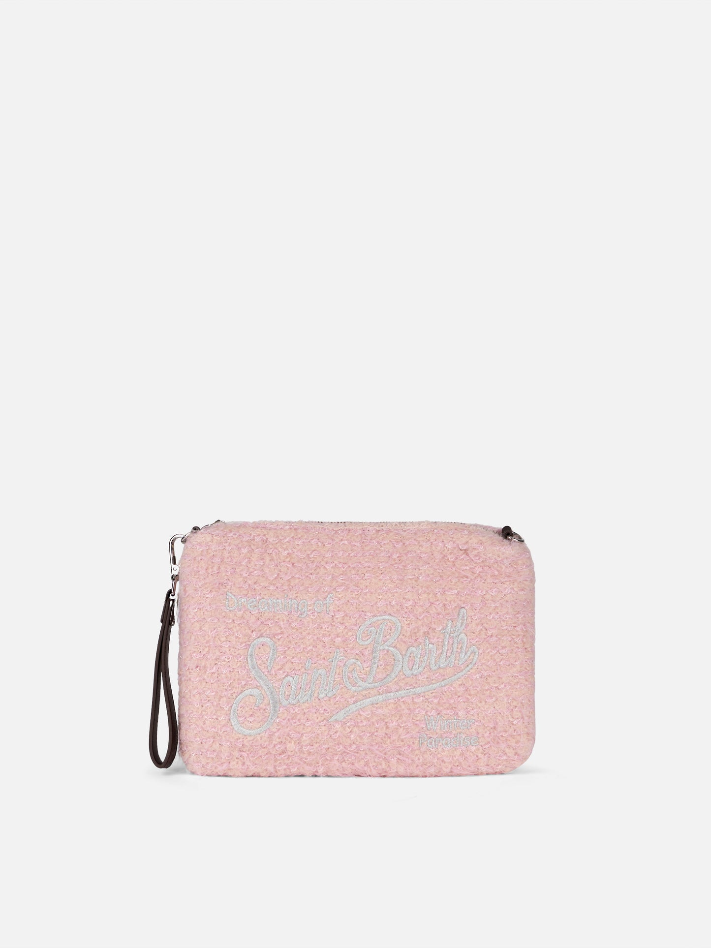 Pouch a tracolla Parisienne in maglia bouclé rosa