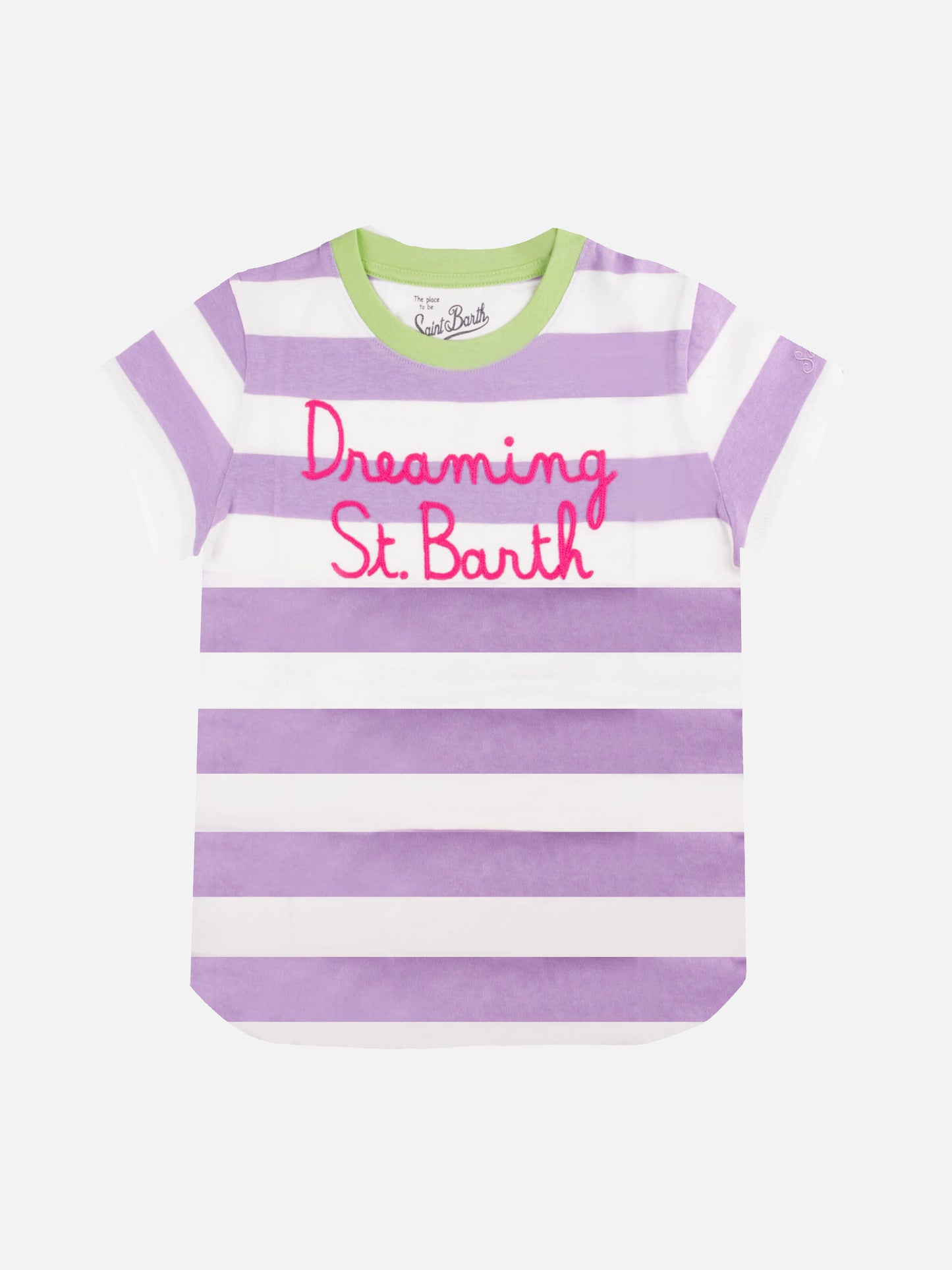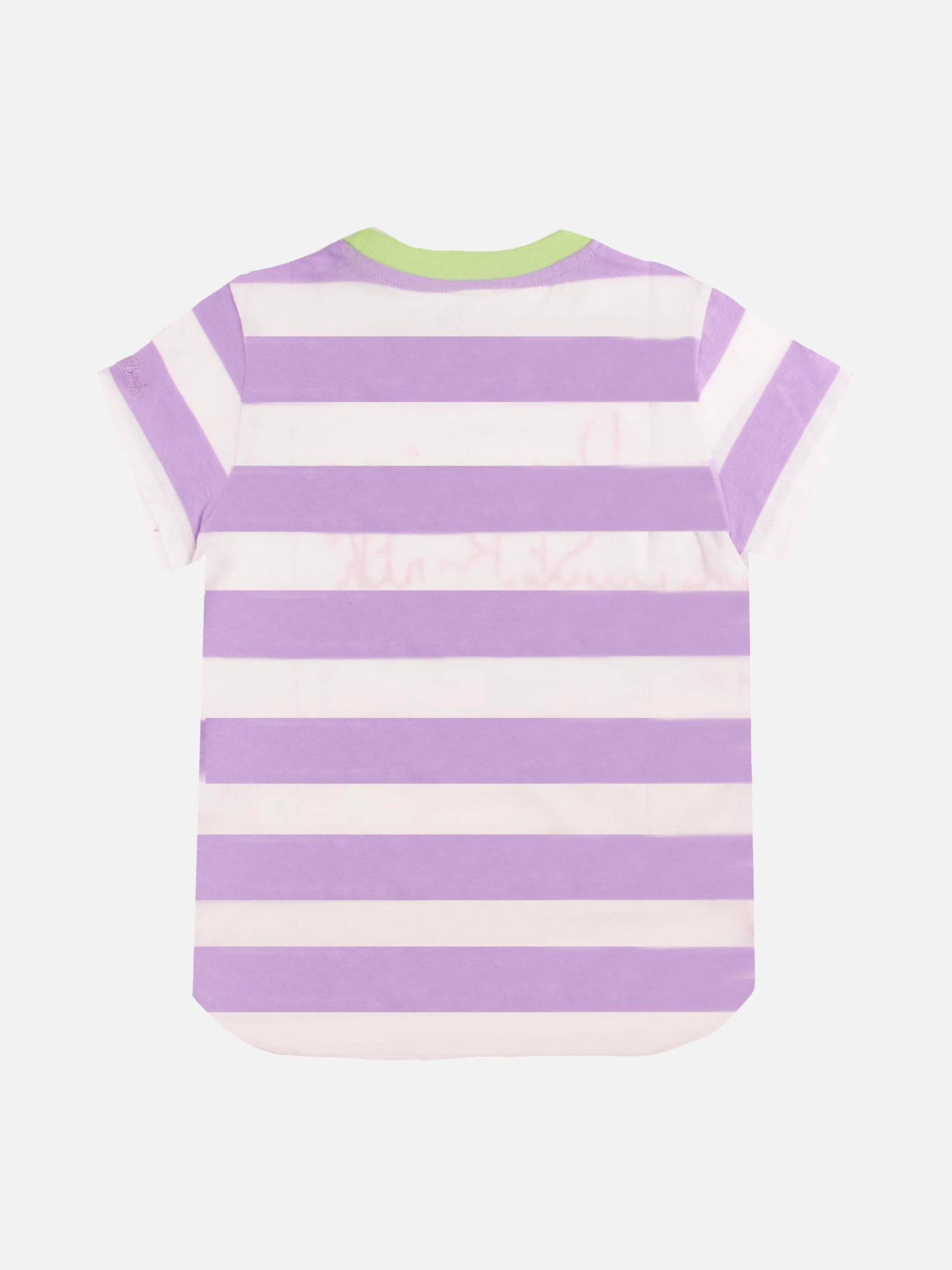 T-shirt da bambina a righe rosa e bianche con scritta ricamata