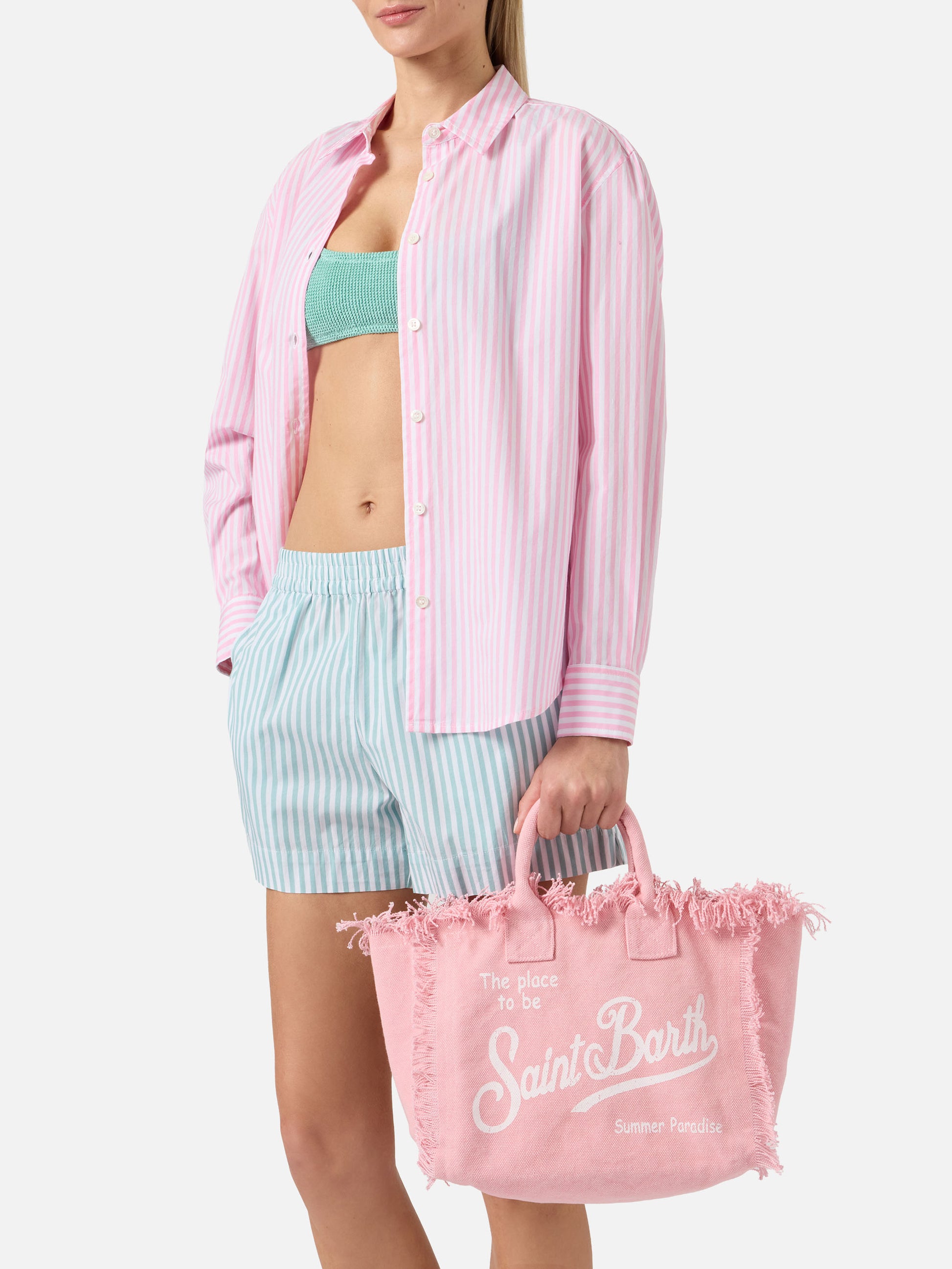 Borsa Colette rosa in canvas con frange