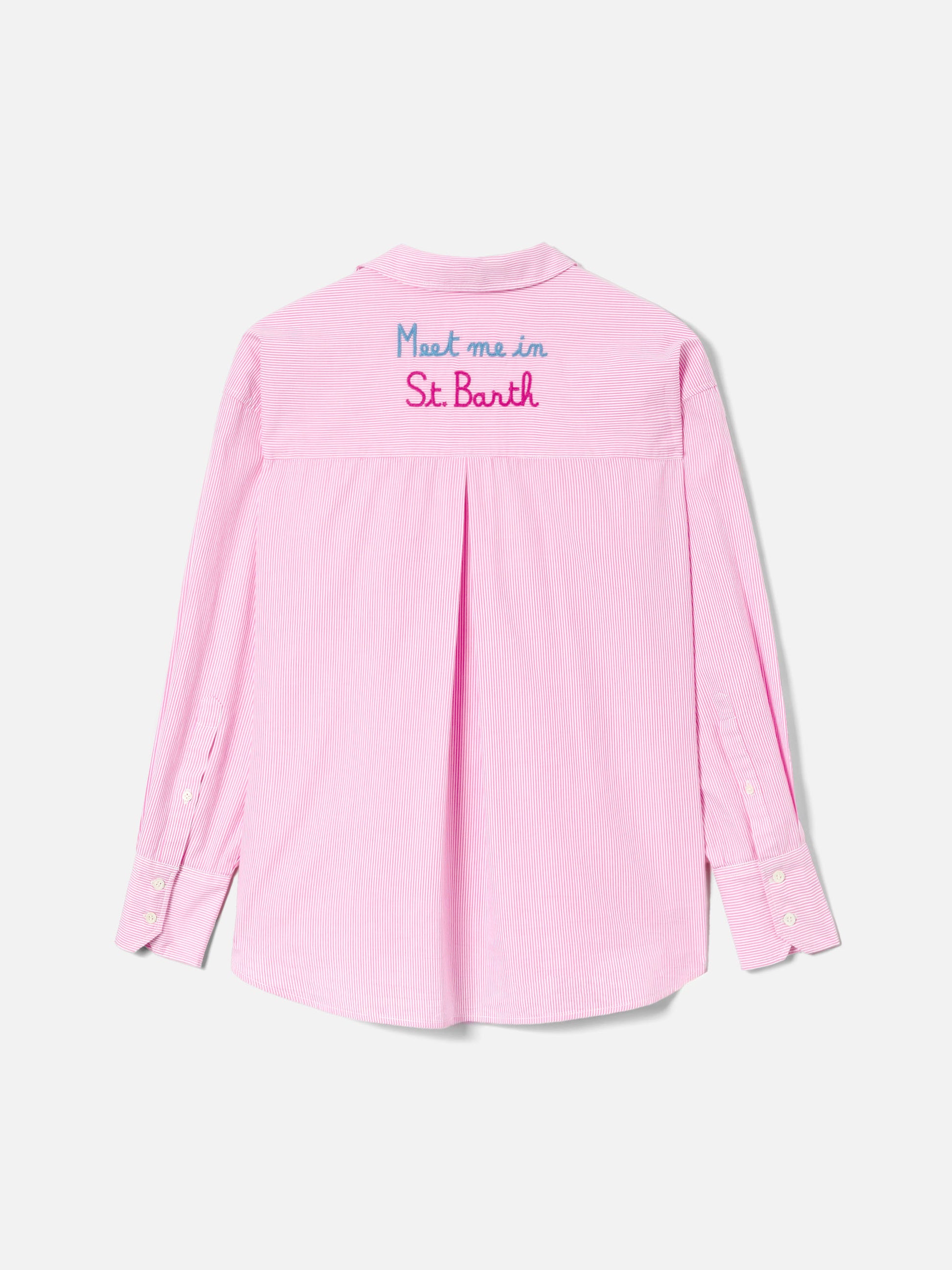 Camicia Cristal in cotone a righe rosa con ricamo Meet Me In Saint Barth