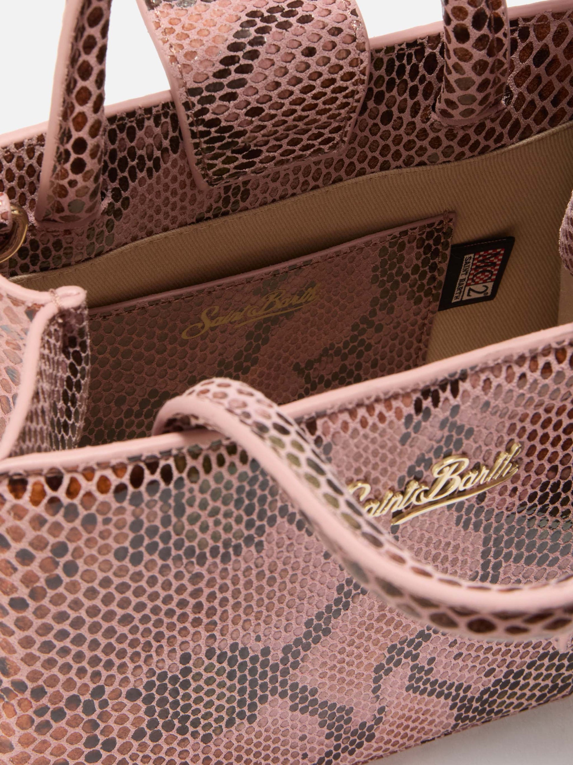 Borsa Shop Bag Micro in pelle con stampa pitonata rosa