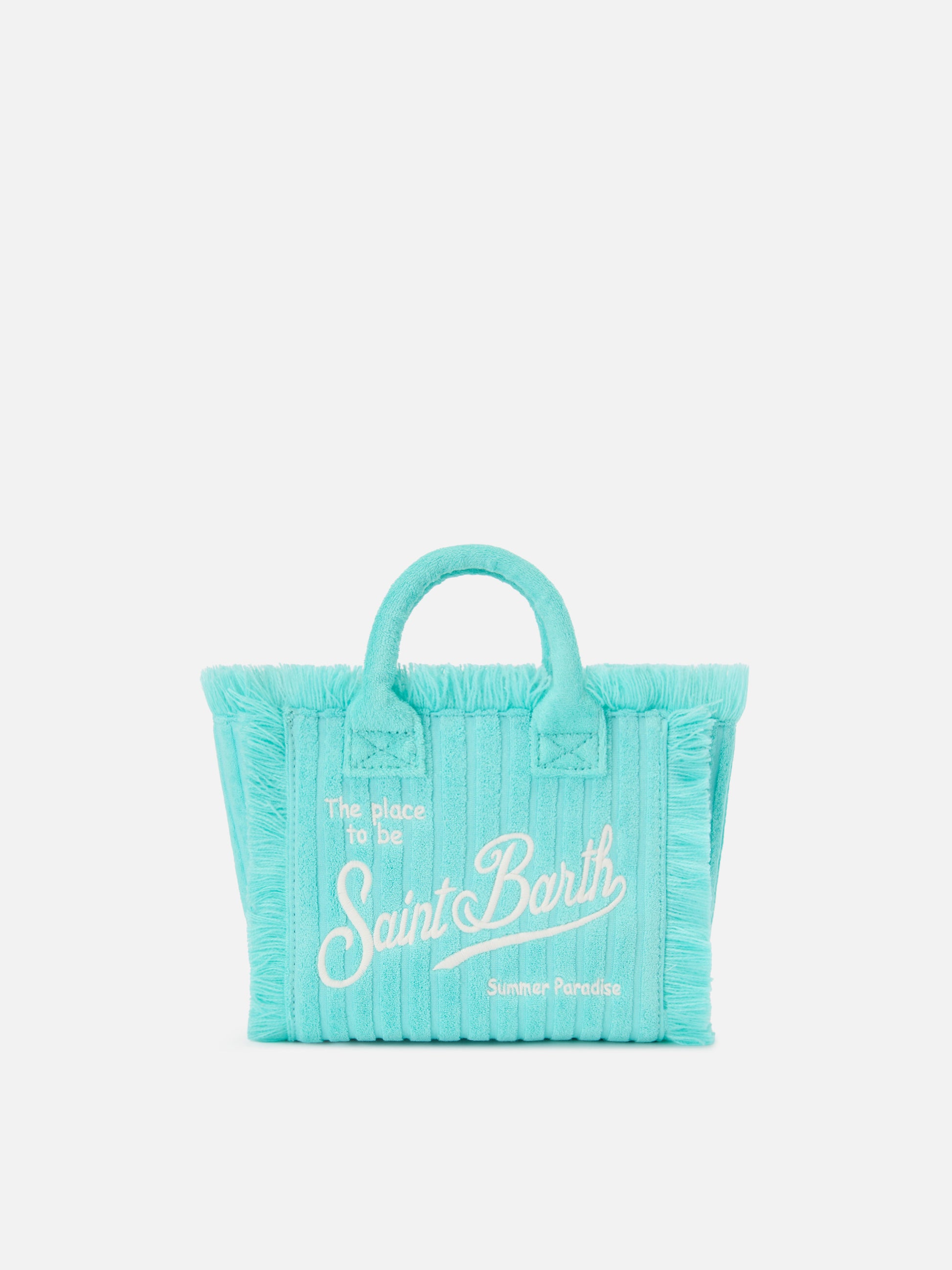 Borsa Vanity mini in tessuto effetto spugna con righe in rilievo