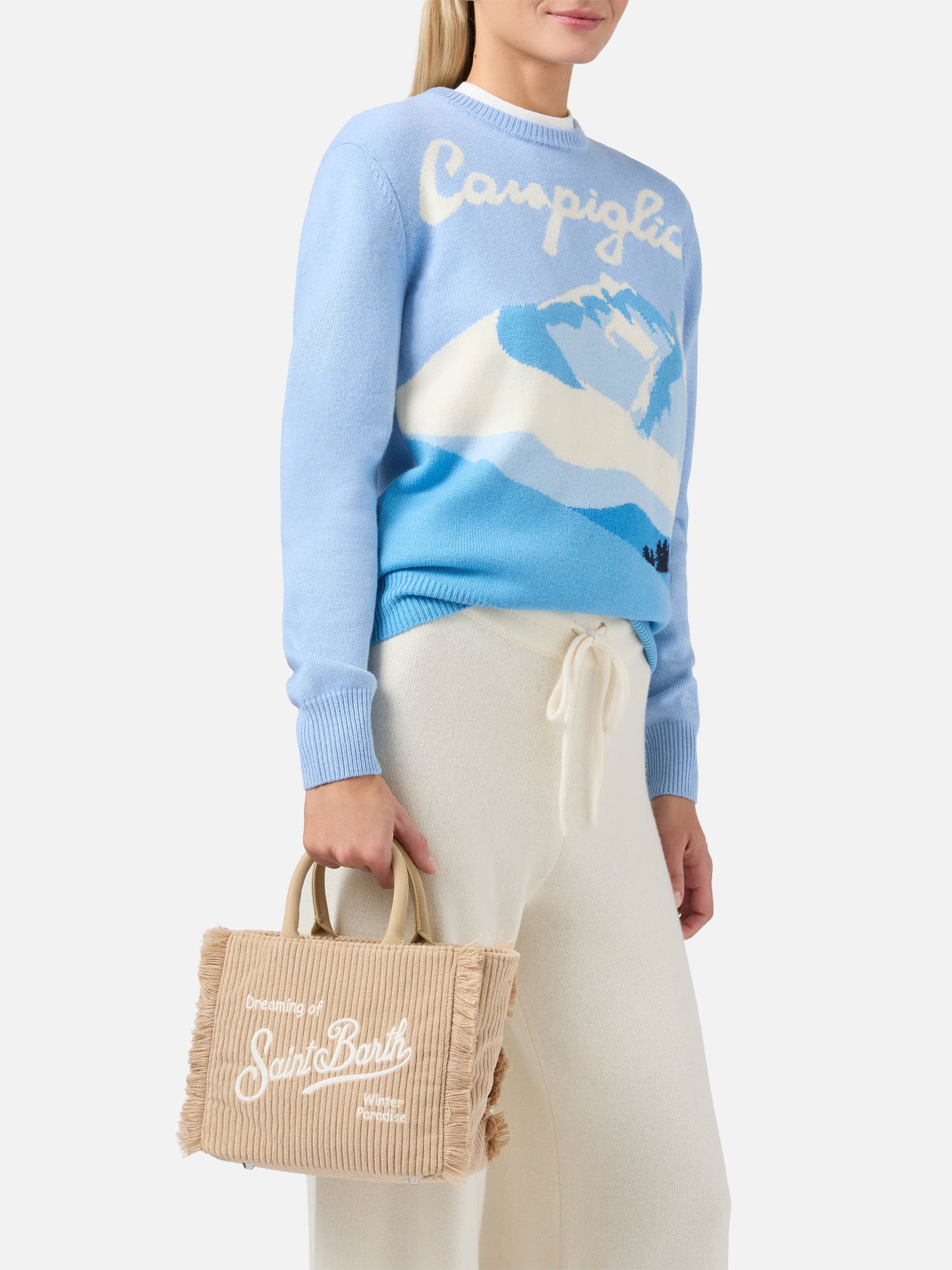 Borsa a mano Vanity Mini Corduroy in velluto a coste e faux suede beige