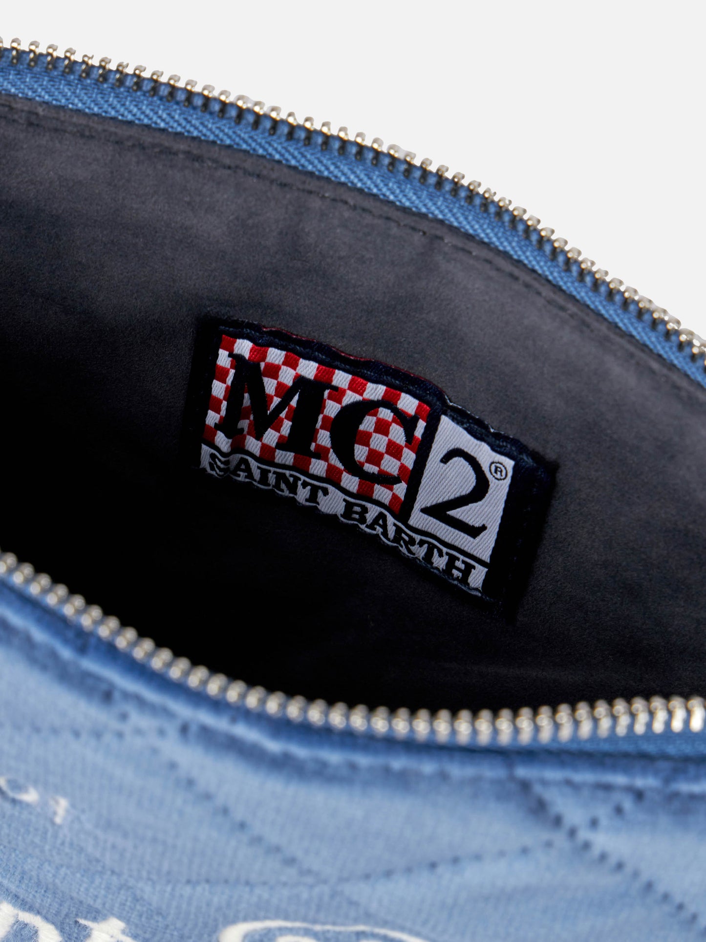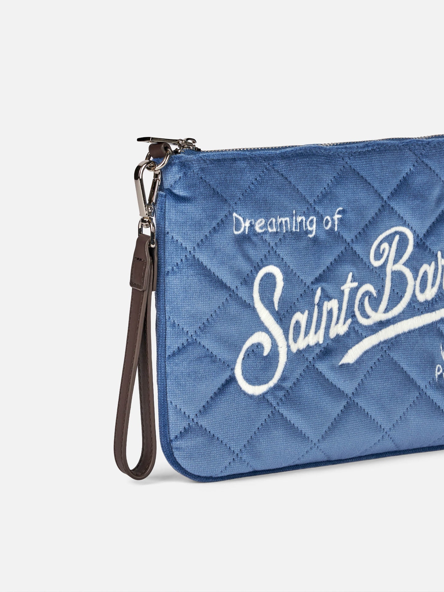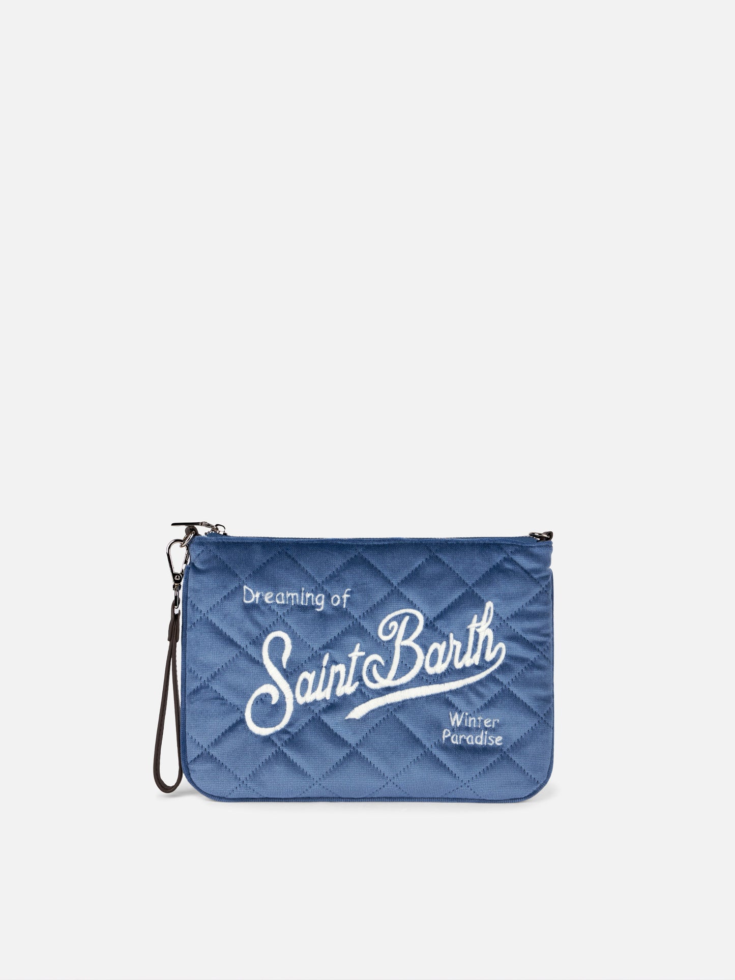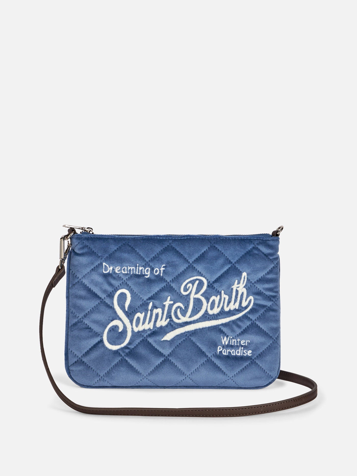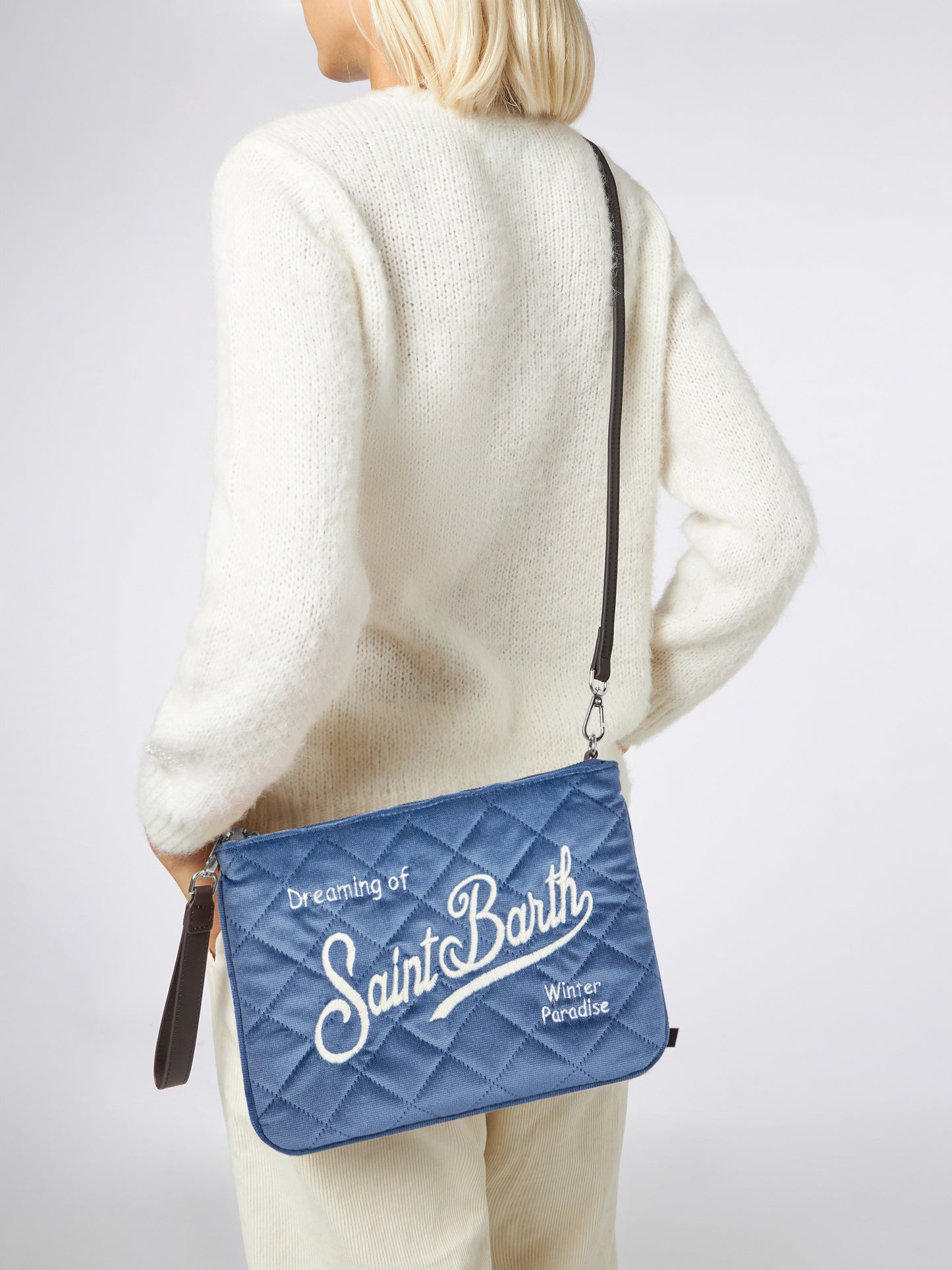 Pouch a tracolla Parisienne sherpa in velluto trapuntato azzurro