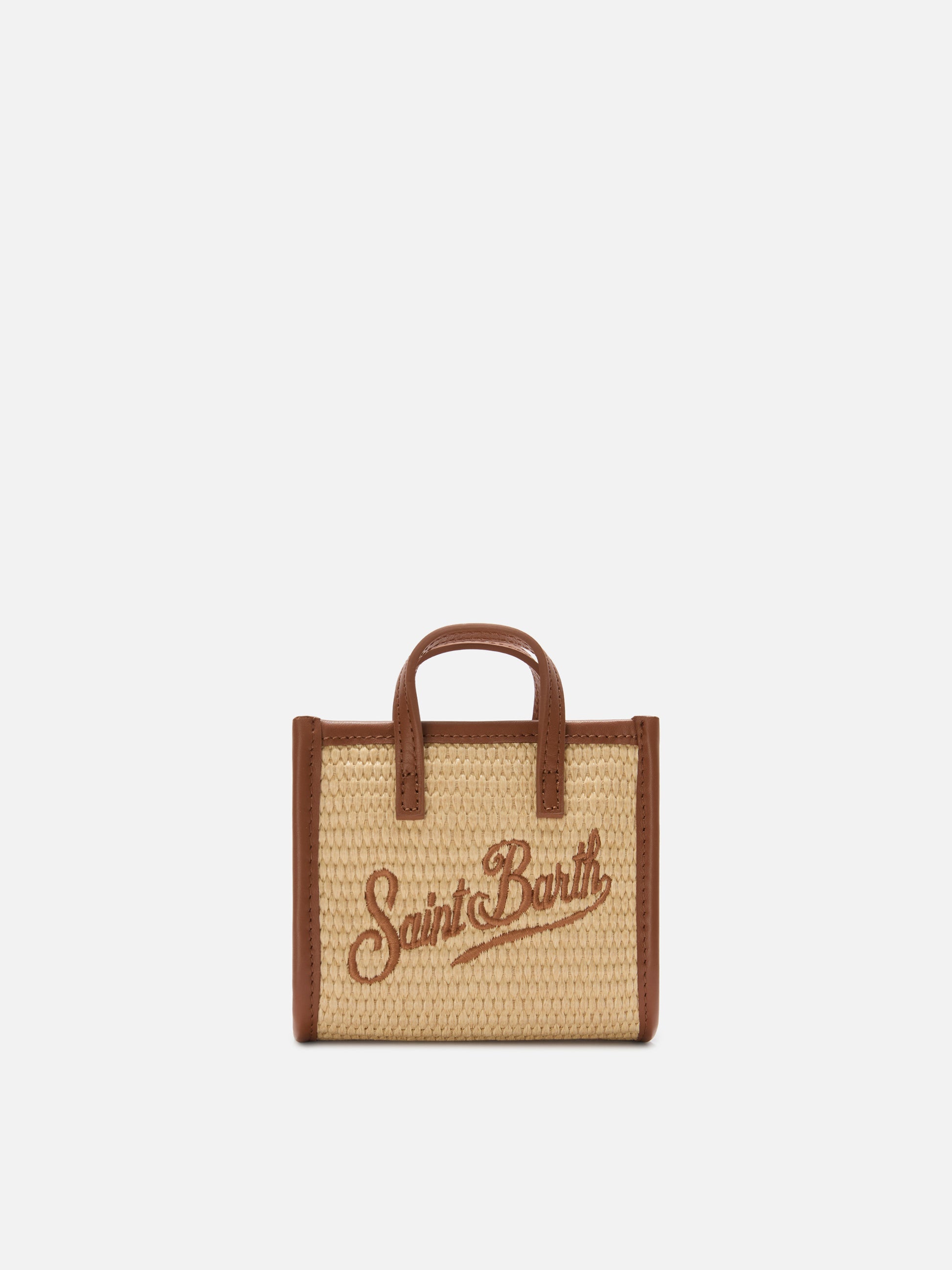 Borsa Vivian micro effetto raffia con logo marrone ricamato