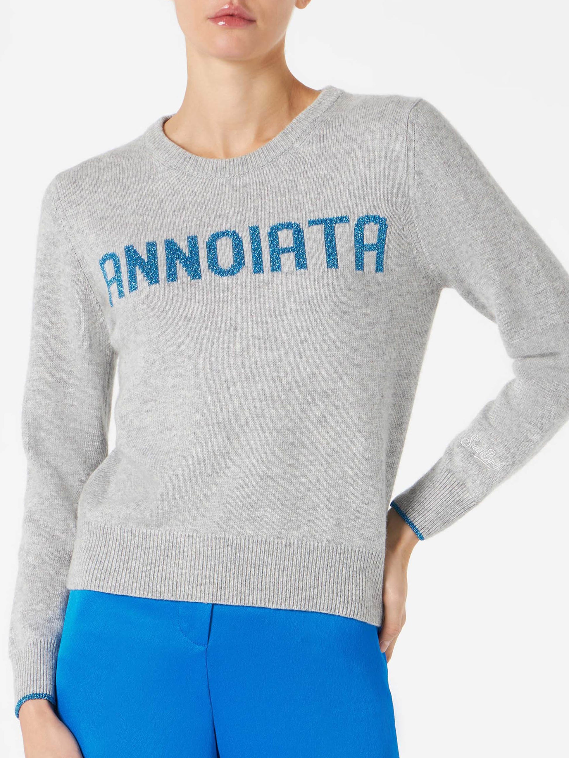 Maglia da donna grigia con scritta Annoiata in lurex