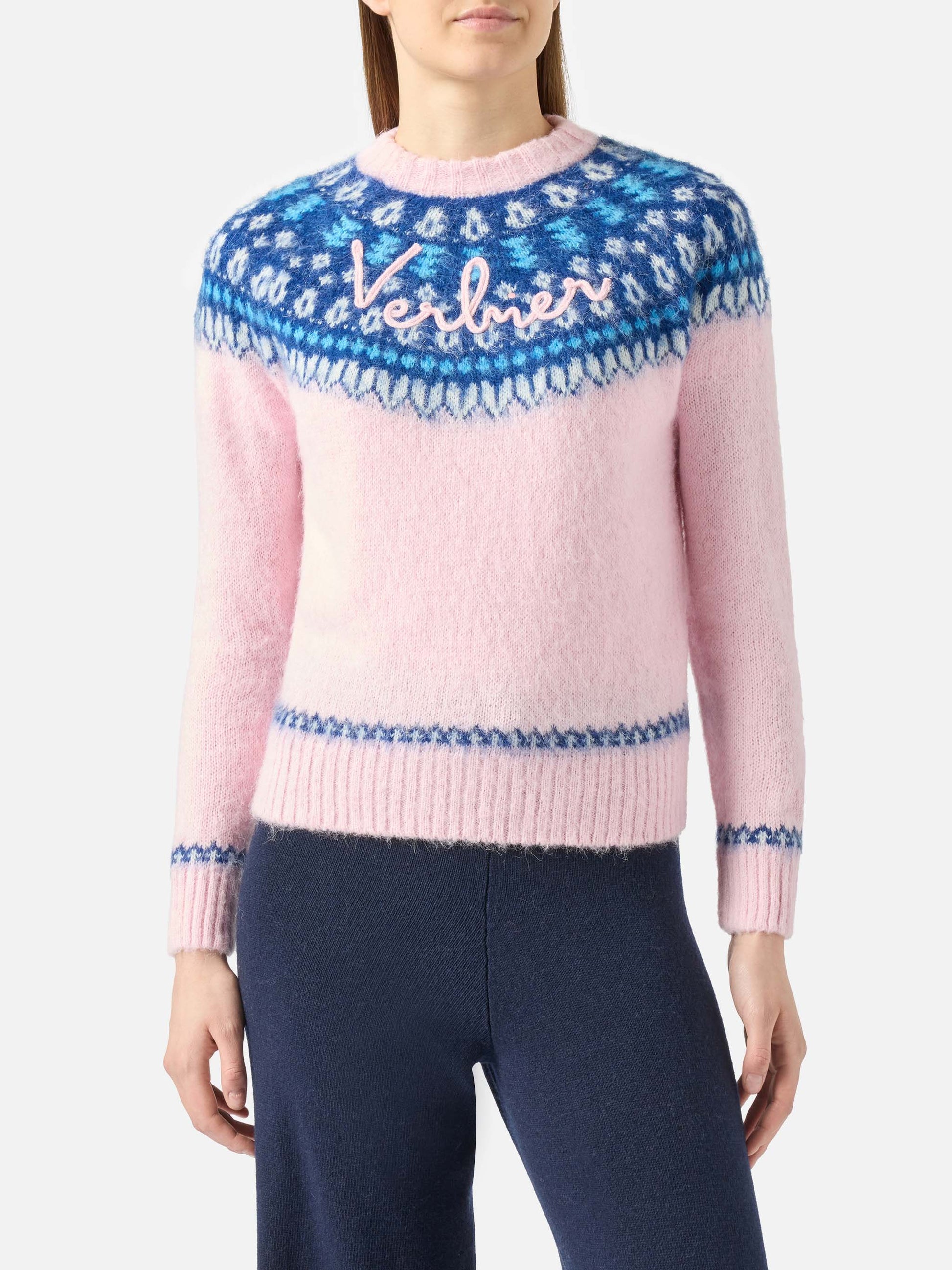 Maglione da donna con jacquard nordico e ricamo Verbier