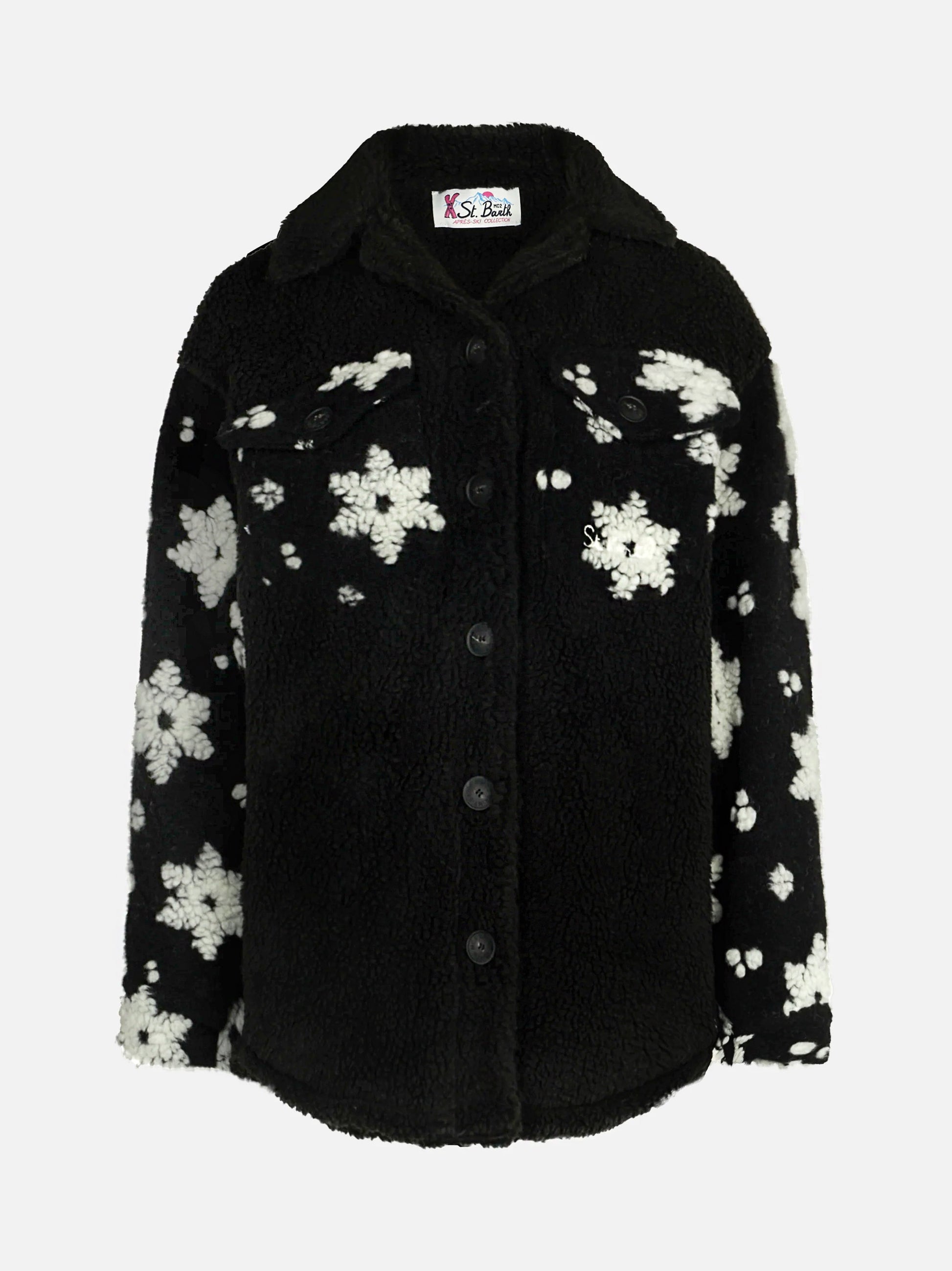 Sovracamicia da donna in sherpa con stampa fiocchi di neve