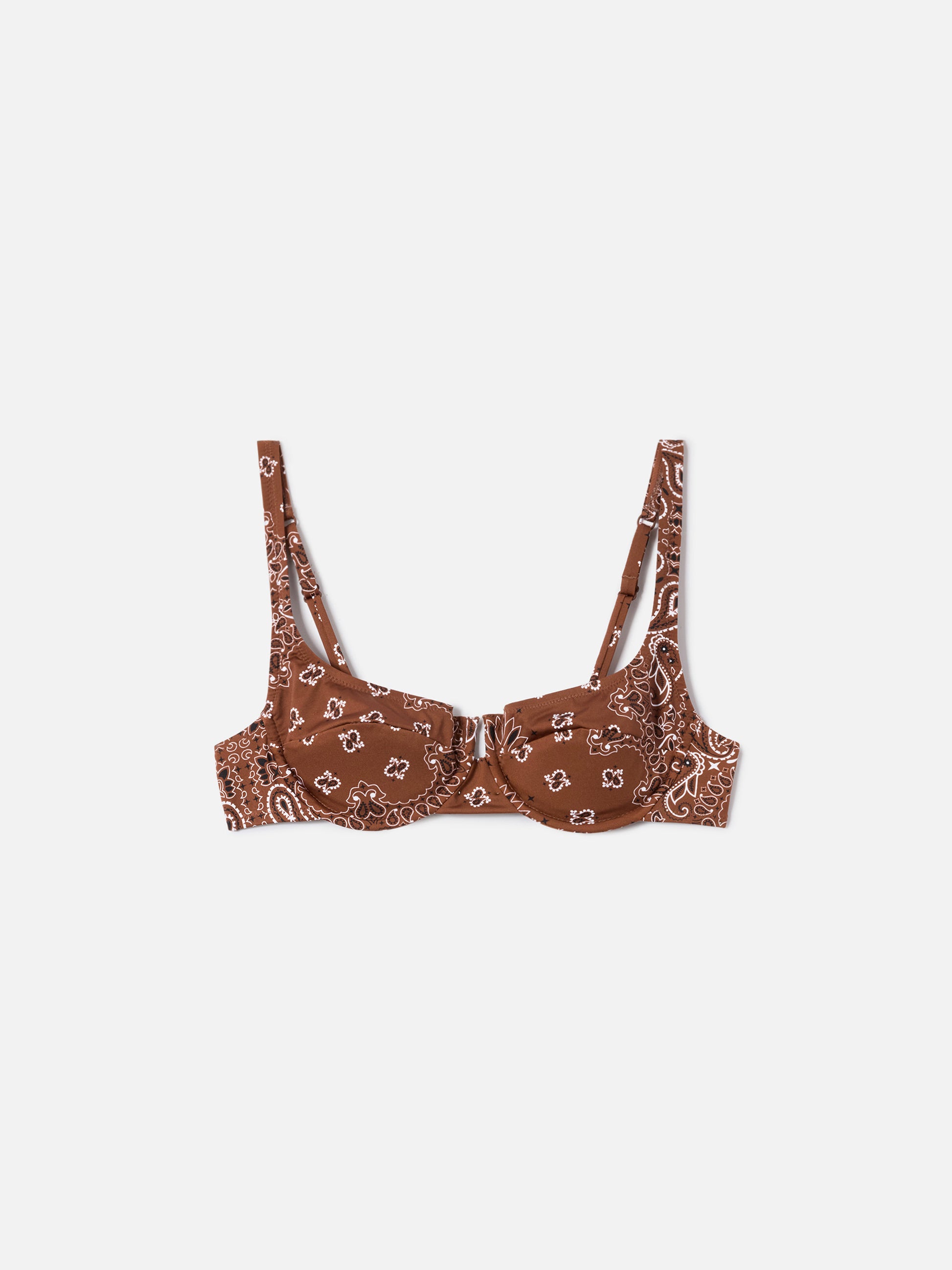 Amira balconette bikini top with brown bandana print