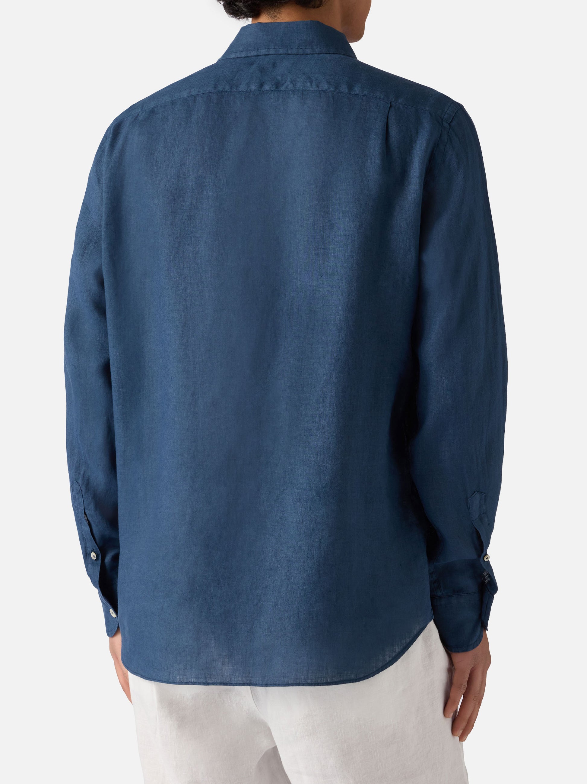 https://it.mc2saintbarth.com/products/blue-navy-raphael-shirt-in-pure-linen10780335702362Blue navy Raphael shirt in pure linen199,00https:files/UID_RPH000100119L-MAN-SHIRT-BLUE-MC2-MC2_2.jpghttps:files/UID_RPH000100119L-MAN-SHIRT-BLUE-MC2-MC2_2.jpgEURInStockSHIRT650948215130All Products - Only Man649134276954AVADA - Best Sellers293962940600Man Linen Collection280529961144Man shirts654689829210UpSelling_Man_ShirtThe Raphael shirt is crafted from pure linen fabric, lightweight and breathable, designed to offer comfort and freshness. The navy blue solid color design enhances the essential aesthetic of the model. The garment features a structured collar and front button closure with mother-of-pearl effect buttons. The design is completed by the side slit with tone-on-tone St. Barth embroidery. The model features long sleeves and a straight line with a regular fit.