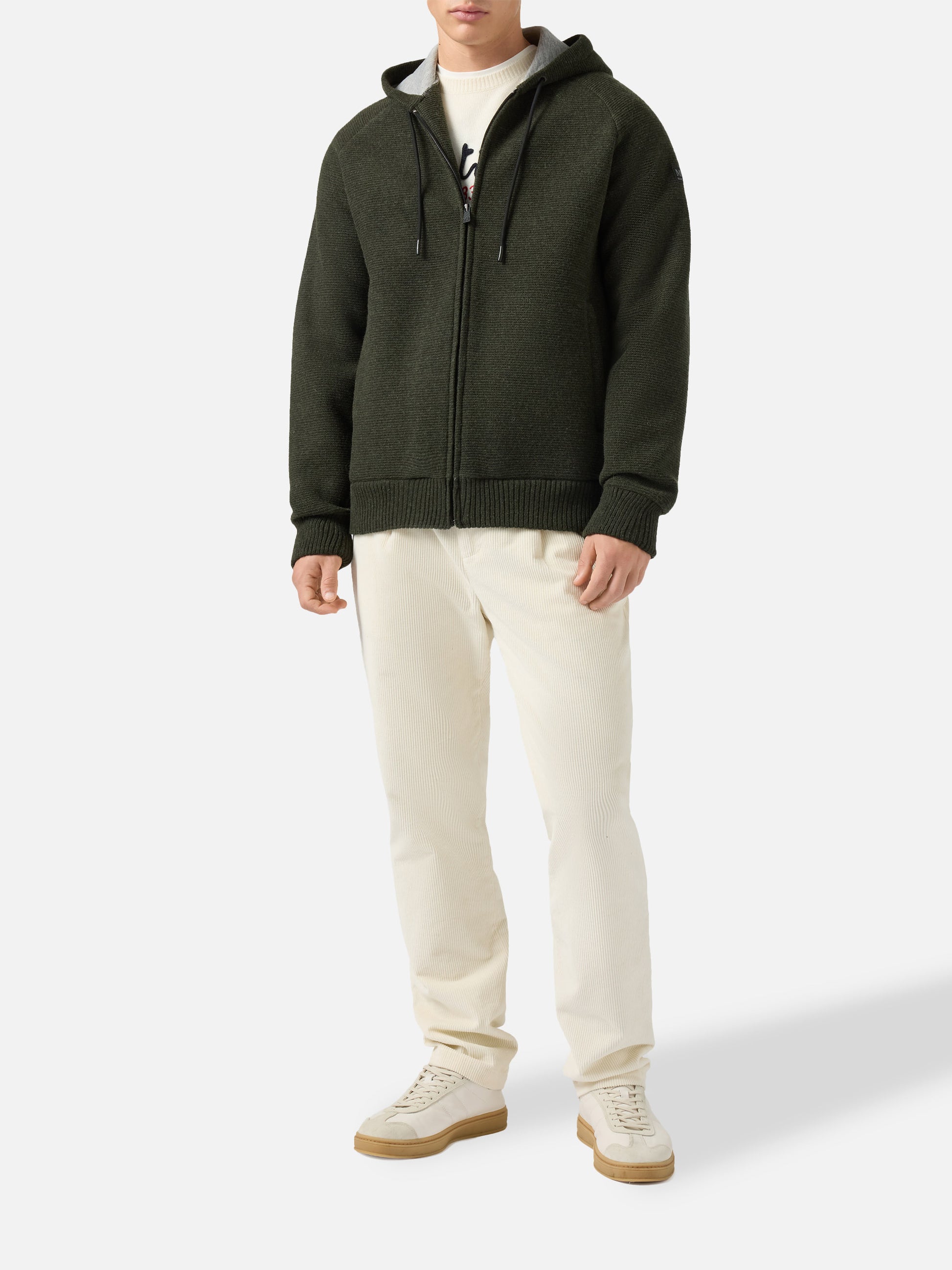 Carrell Knit focuses on texture and practicality: military green is the bold note in your wardrobe. Soft outside, comfy inside—ready for anything.