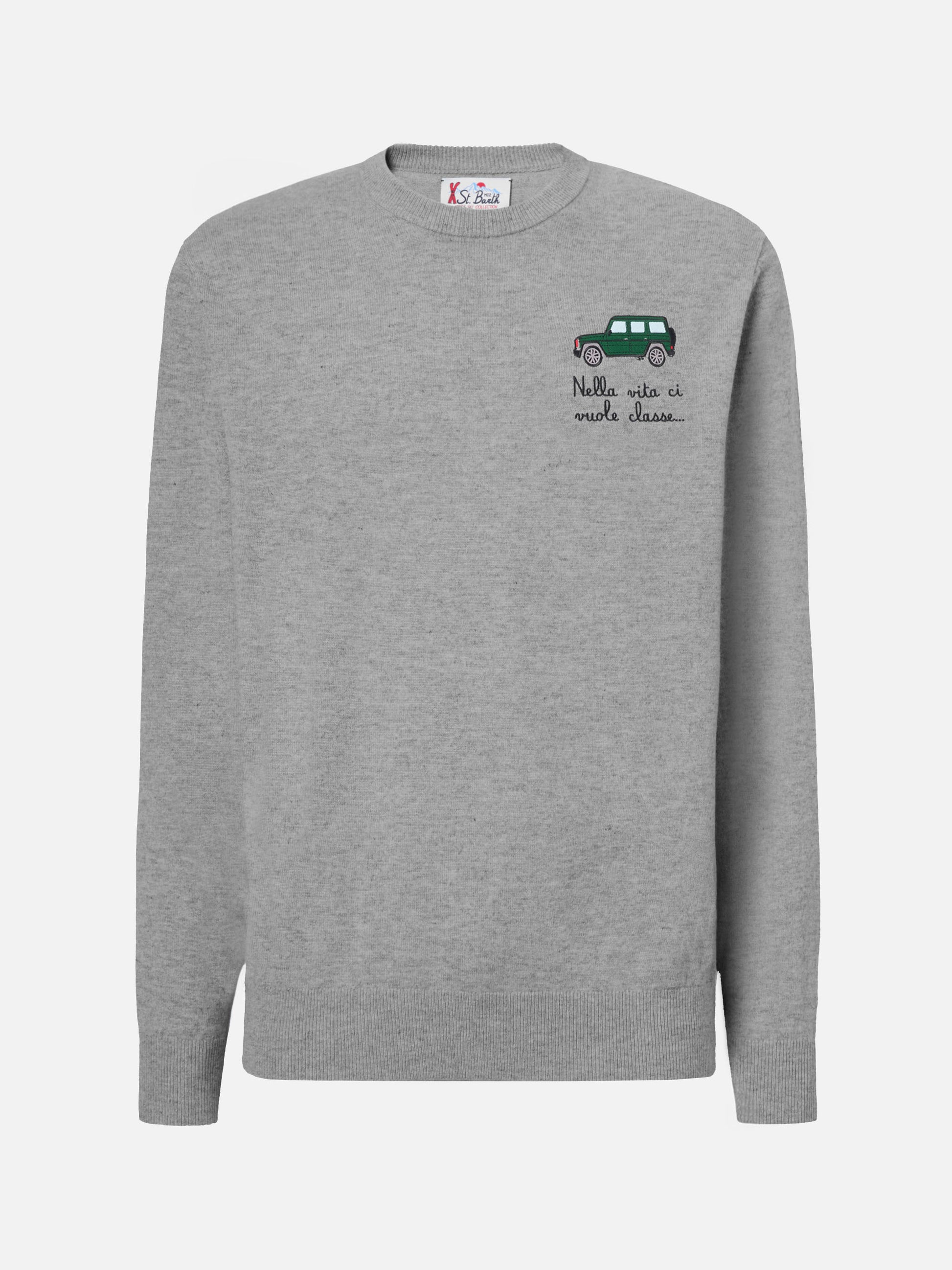 Crewneck sweater Heron Light with Nella vita ci vuole classe embroidery