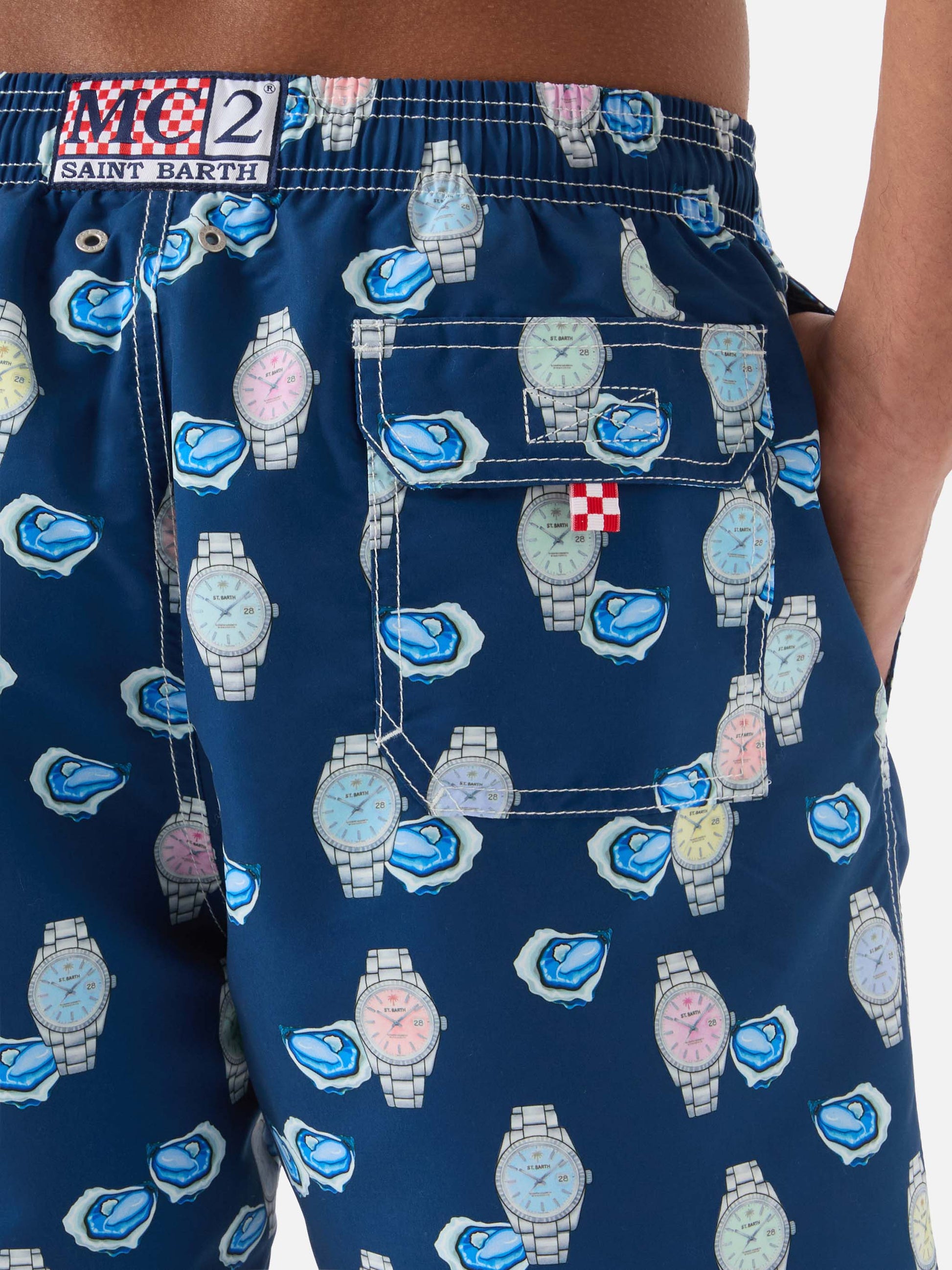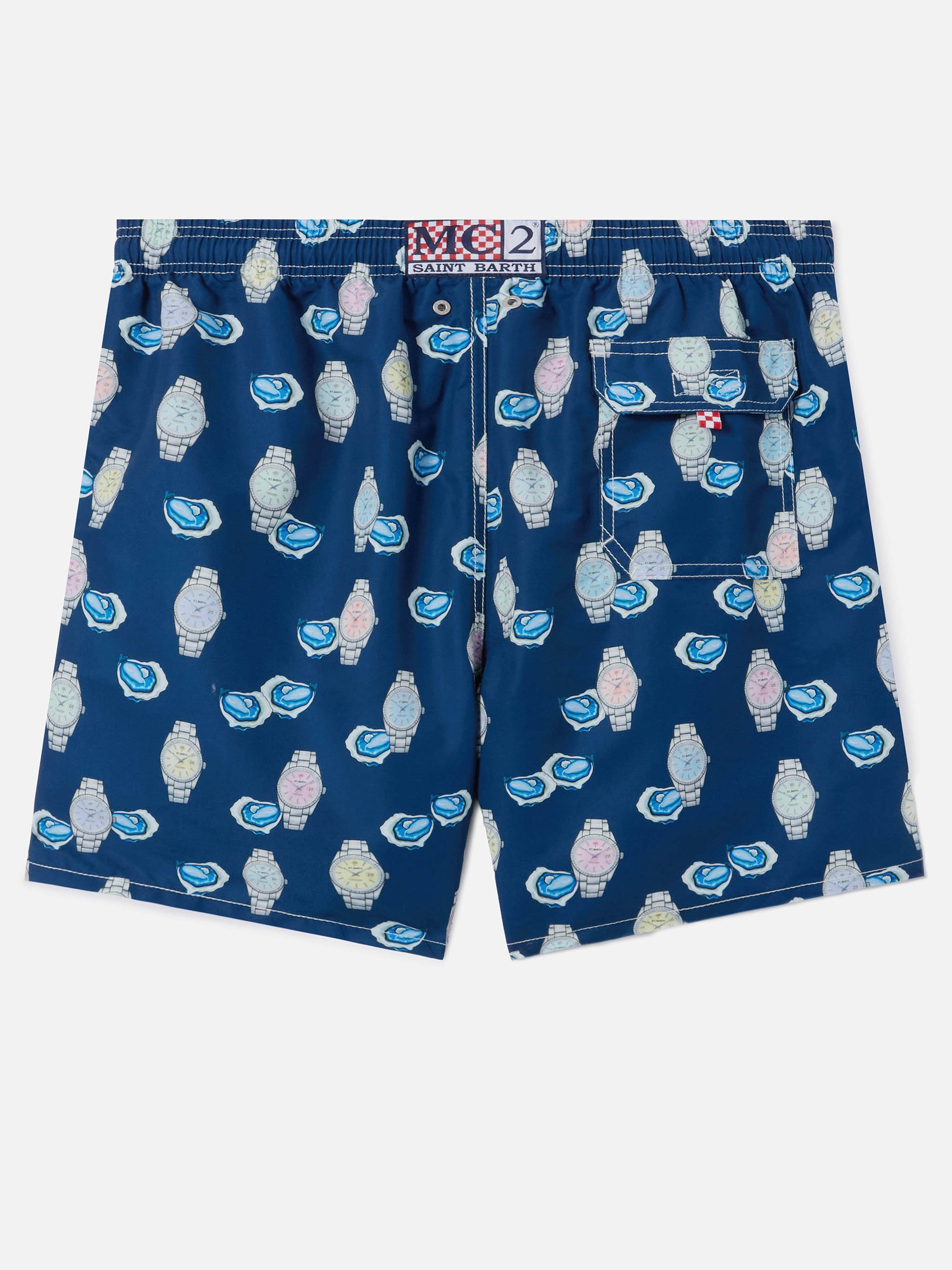 https://it.mc2saintbarth.com/products/gustavia-swim-shorts-with-oysters-and-watches-print10773485879642Gustavia swim shorts with oysters and watches print139,00https:files/UID_GUS000101566L-MAN-SWIMSHORT-BLUE-MC2-MC2_1.jpghttps:files/UID_GUS000101566L-MAN-SWIMSHORT-BLUE-MC2-MC2_1.jpgEUROutOfStockSWIMSHORT650948215130All Products - Only Man649134276954AVADA - Best Sellers628483490138Gustavia man swim shorts647292092762Micro Print Watch672324452698New In - Man603371077978Swimshorts All626727649626The Soft Hand Fabric654689960282UpSelling_Man_Swimshorts654690386266UpSelling_Man_Swimshorts-Watches279223304376View All Macro Printed Swim Shorts621710016858Watches passionatesGustavia swim shorts are crafted from lightweight fabric with a soft peach-touch finish that ensures comfort and a pleasant feel on the skin. The solid blue base is enriched by a print featuring oysters and watches, giving the style an original and refined character. The elasticated waistband with drawstring allows the fit to be easily adjusted, while the construction with side pockets, back pocket and stretch antibacterial inner mesh ensures practicality and comfort during wear.