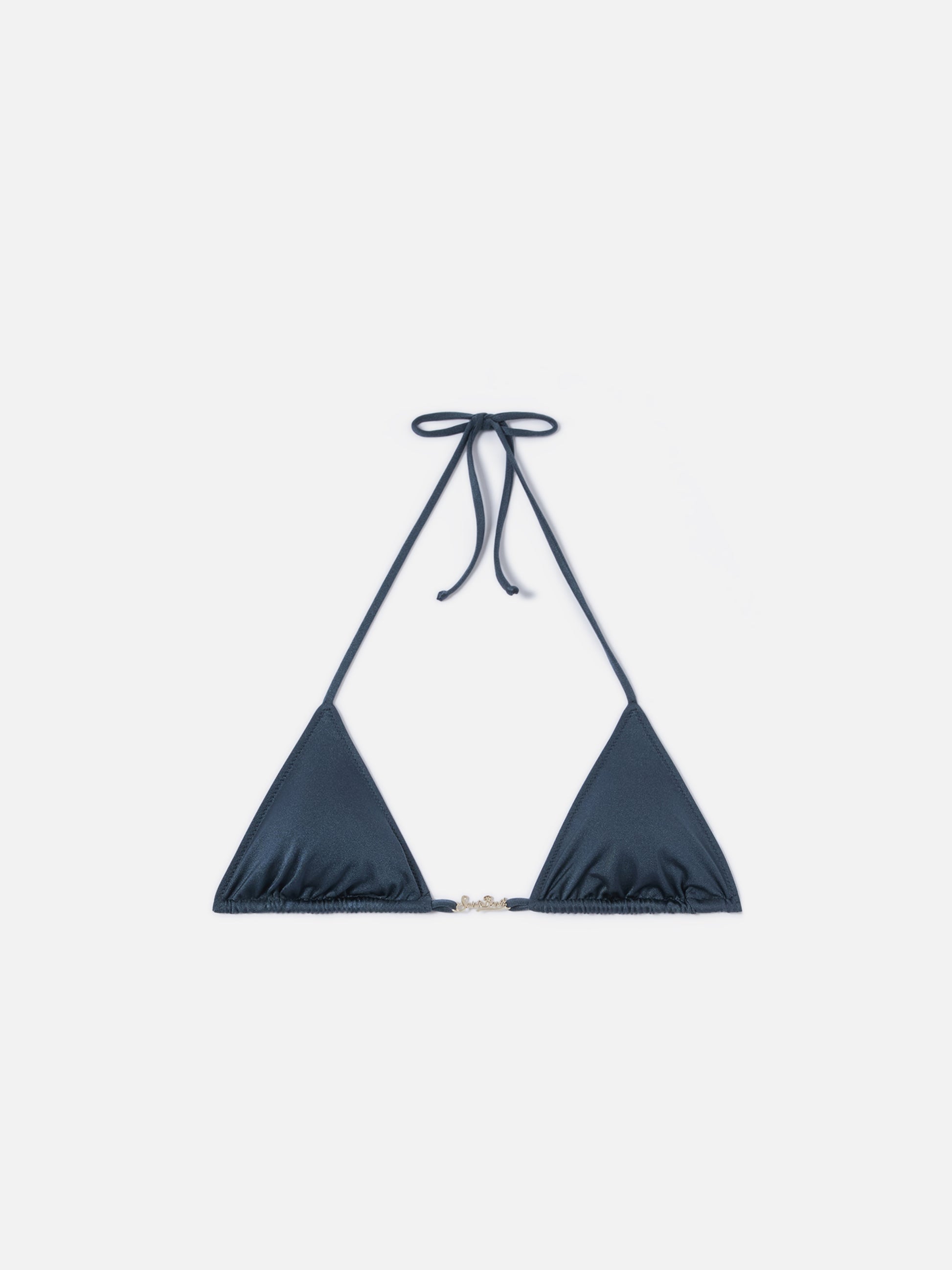 Leah Plate triangle bikini top in grey glossy finish fabric