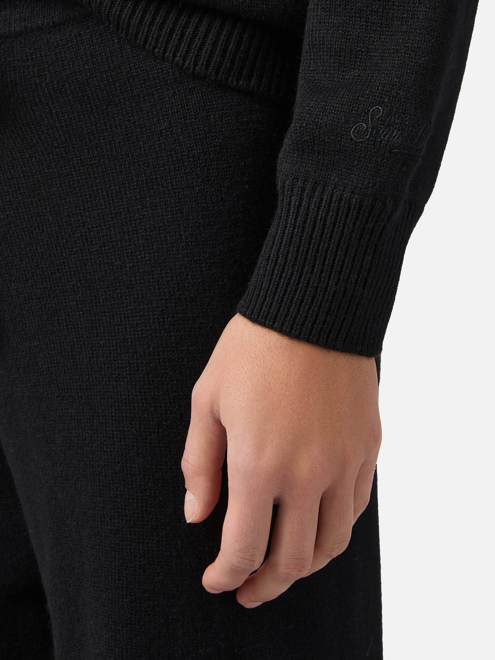 New Queen cashmere-blend sweater in black with Bollicine, please embroidery
