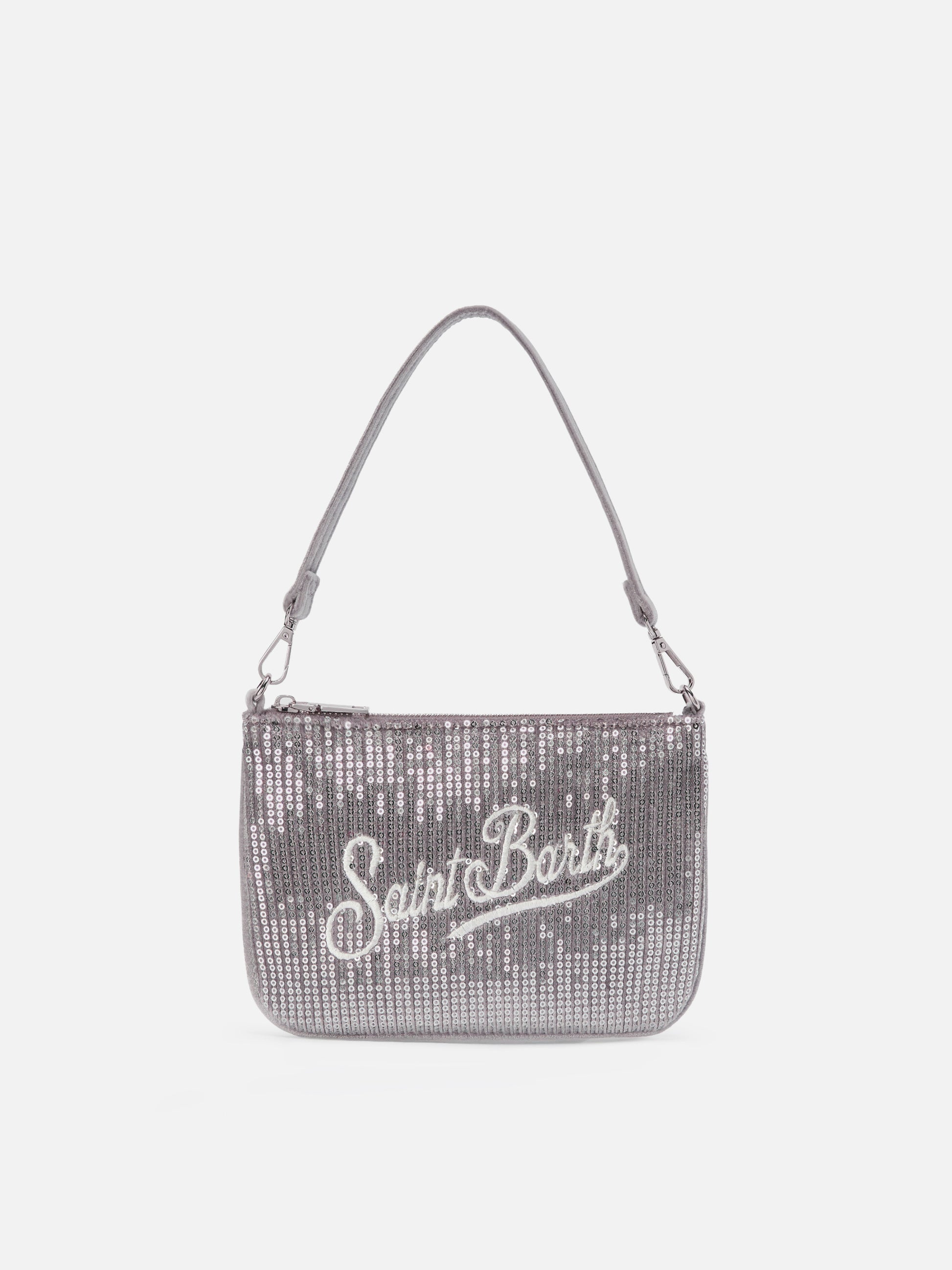 Parisienne Mini Shoulder Bag in gray velvet with sequins