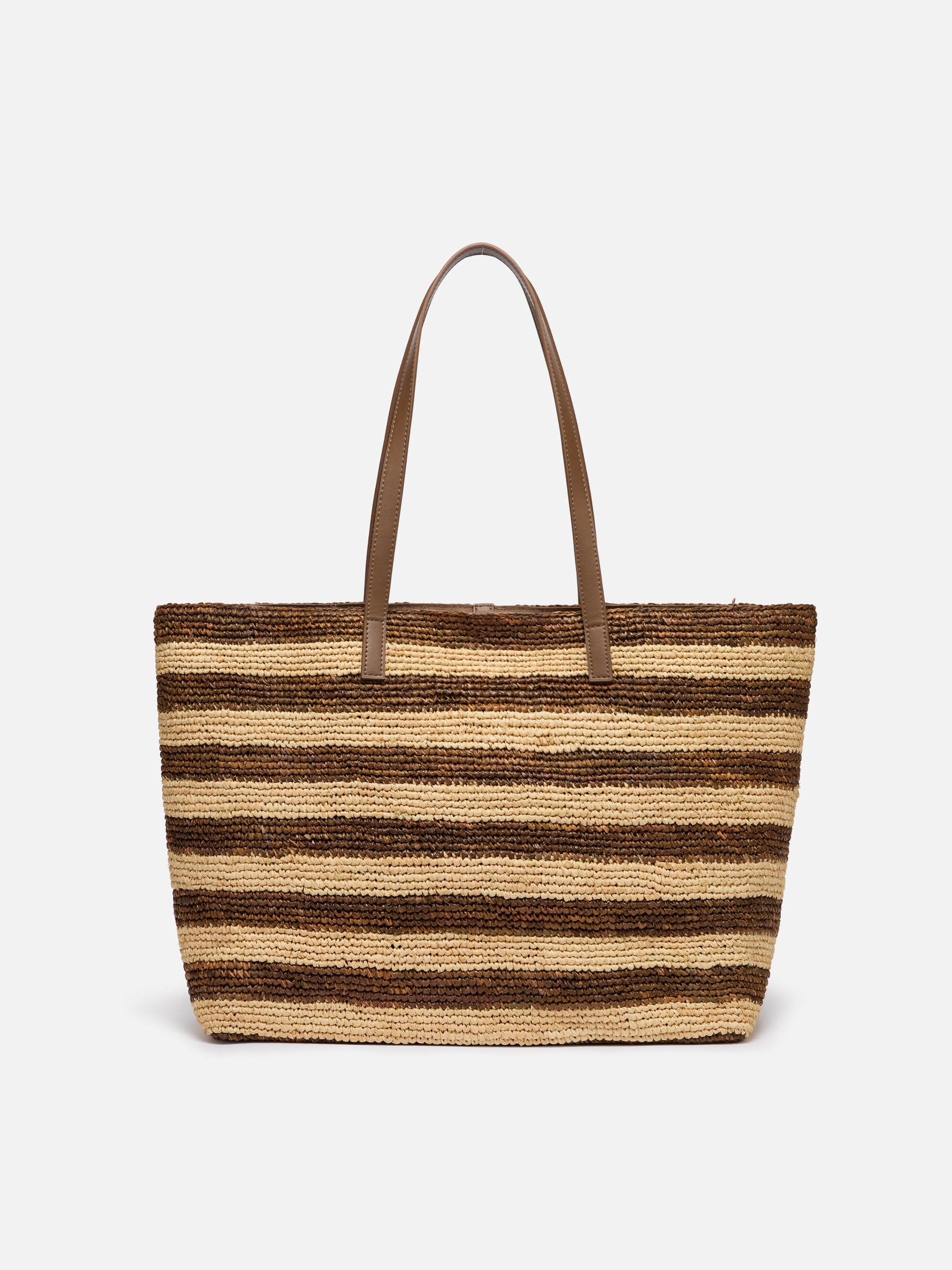 Raffia City bag with brown striped print