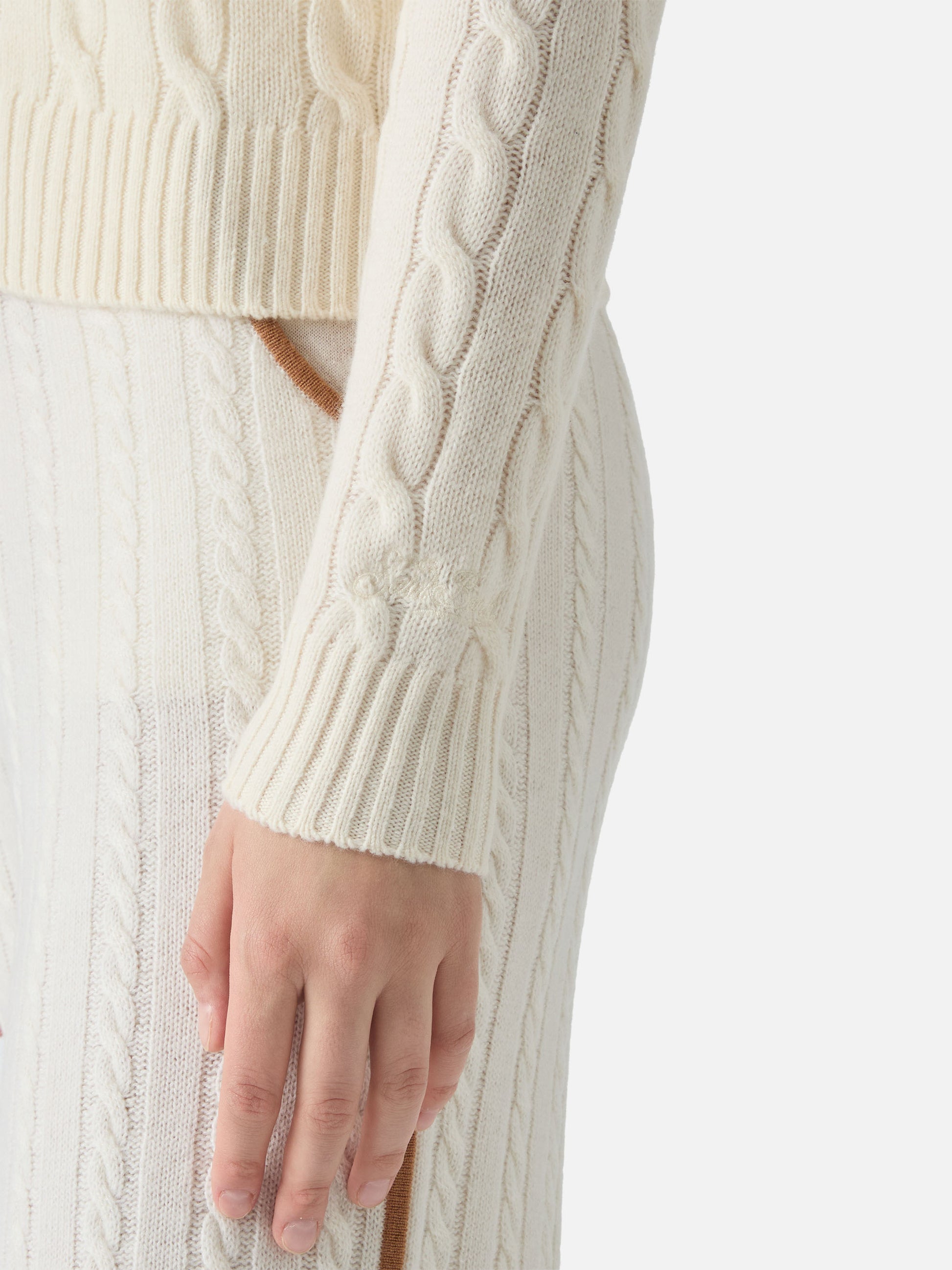 Savoy soft-touch cable-knit merino wool polo sweater in white