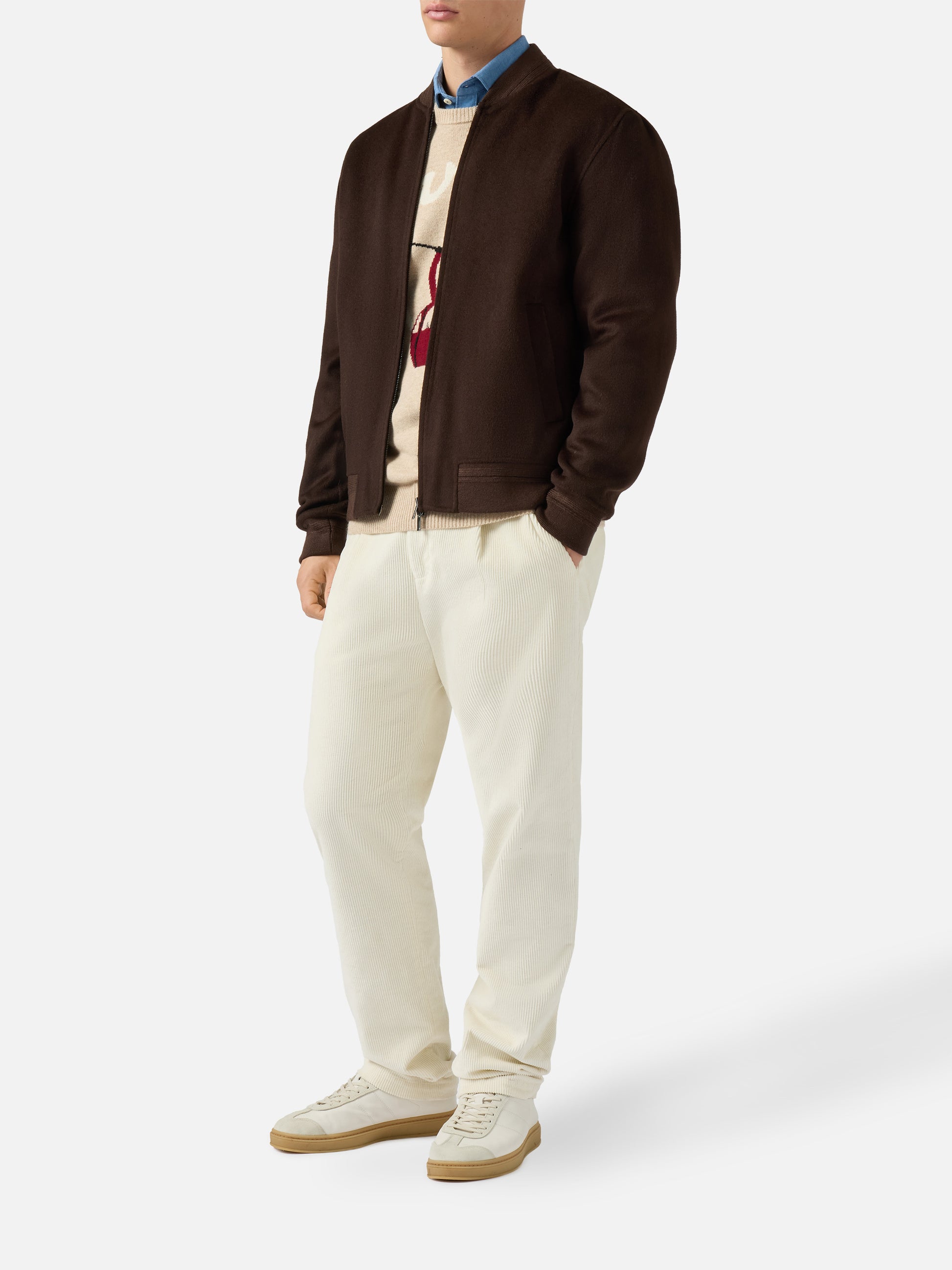 Unlined Camden wool bomber in brown