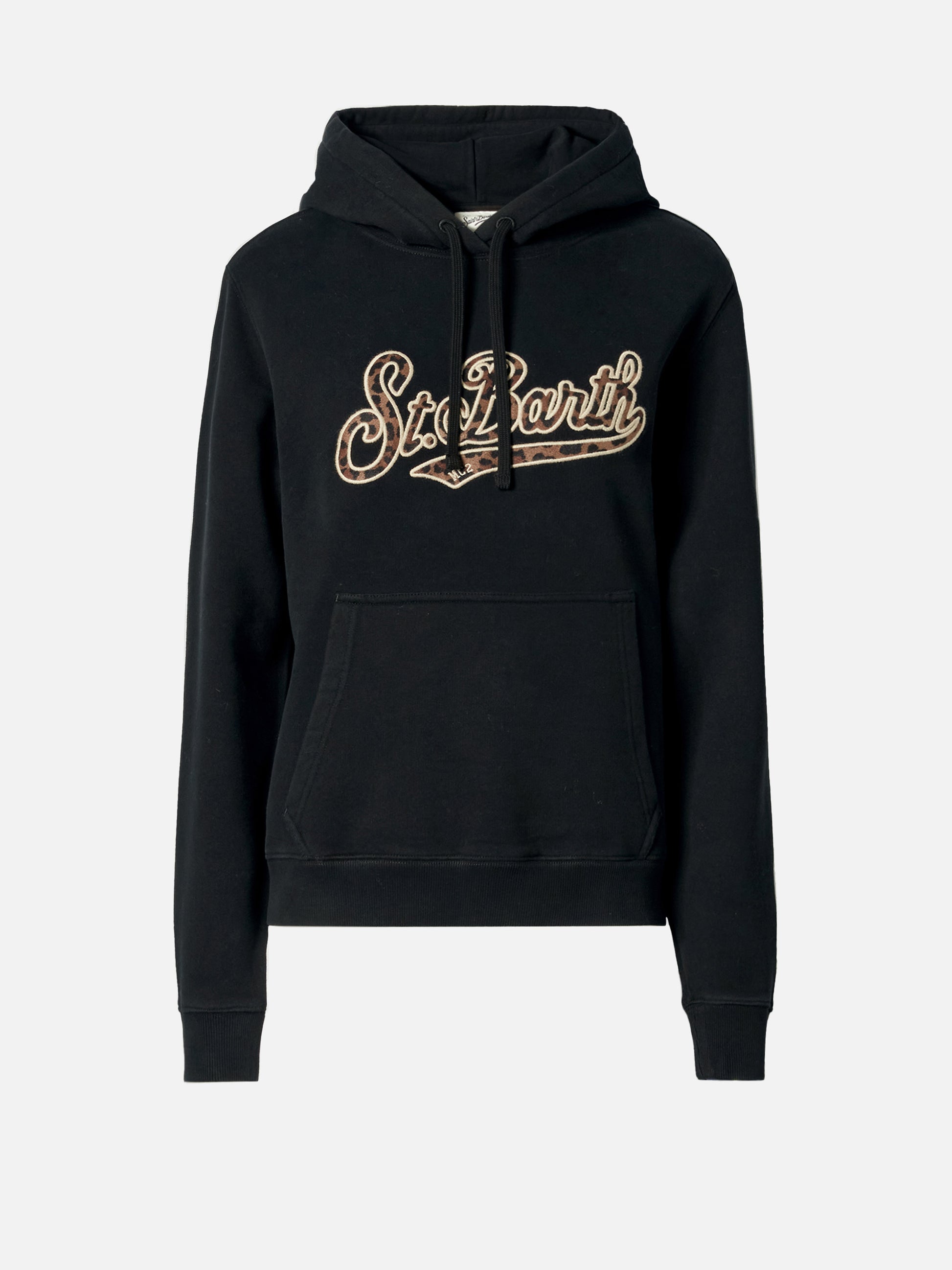 Virginia cotton hoodie in black with animal-print St. Barth embroidery