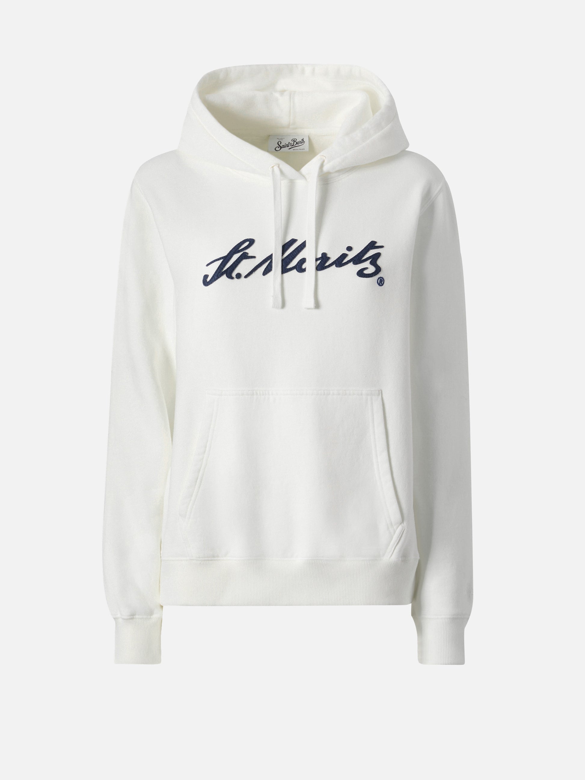 Virginia cotton hoodie in white with St. Moritz embroidery | ST. MORITZ SPECIAL EDITION