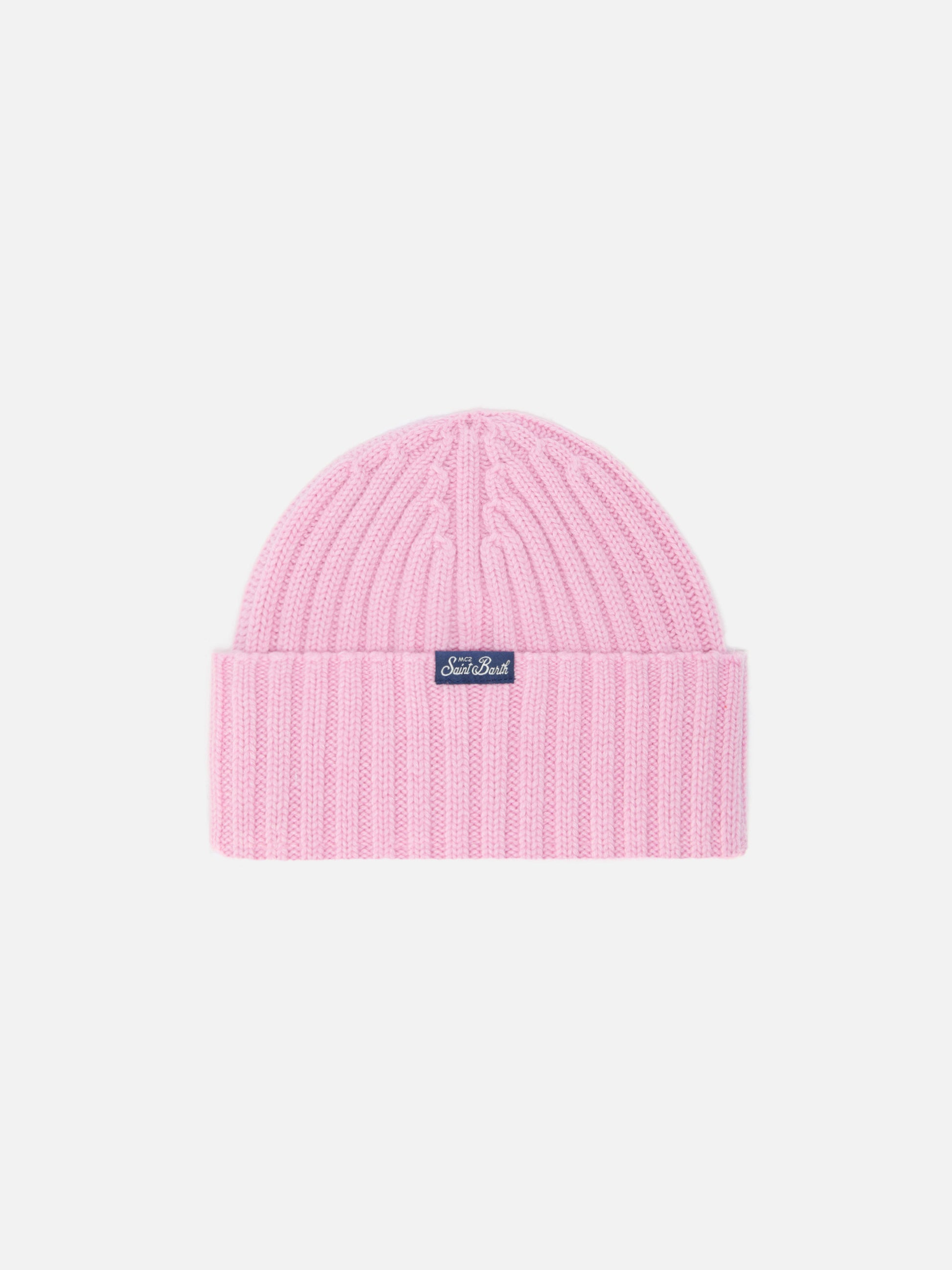 Wengen beanie in cashmere blend in pink with Viziata embroidery