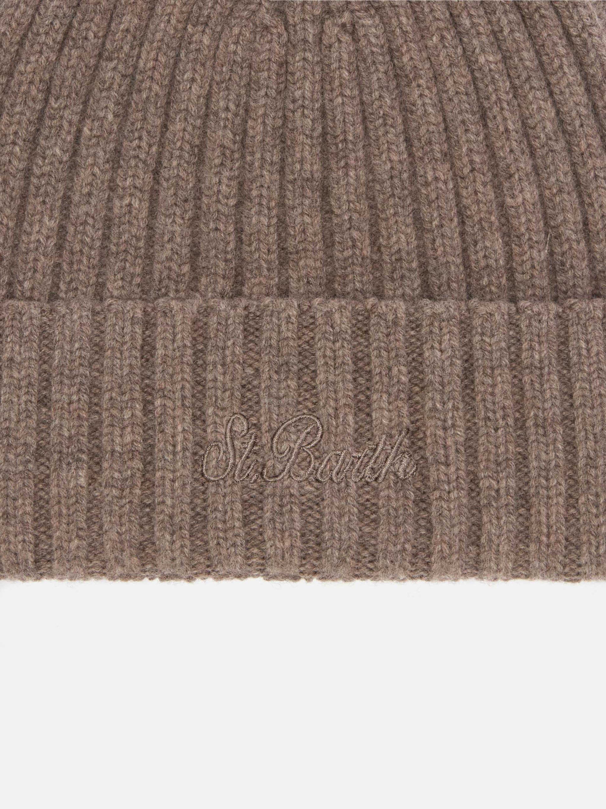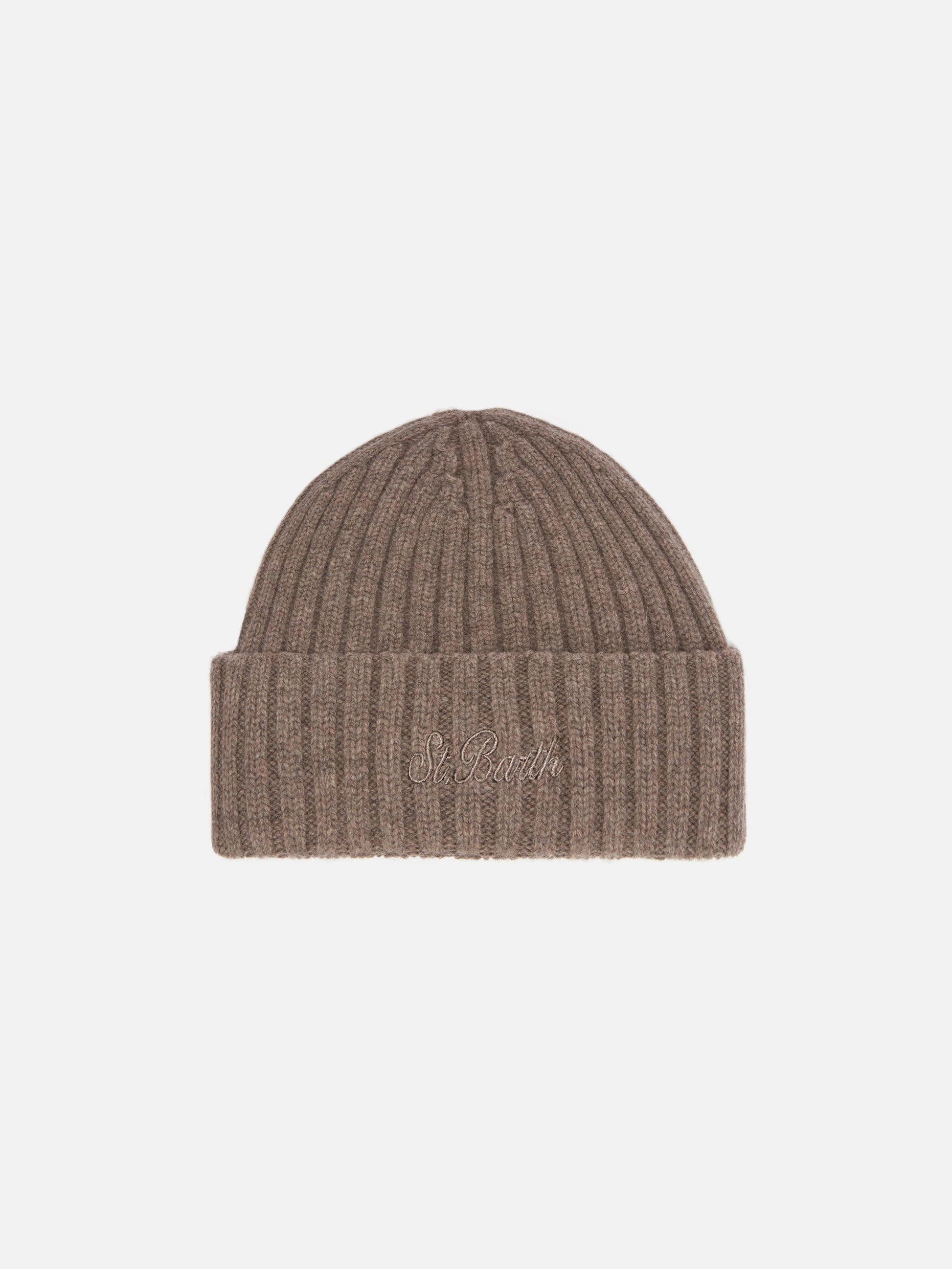 Wengen beanie in hazelnut wool with St. Barth embroidery on the turn-up