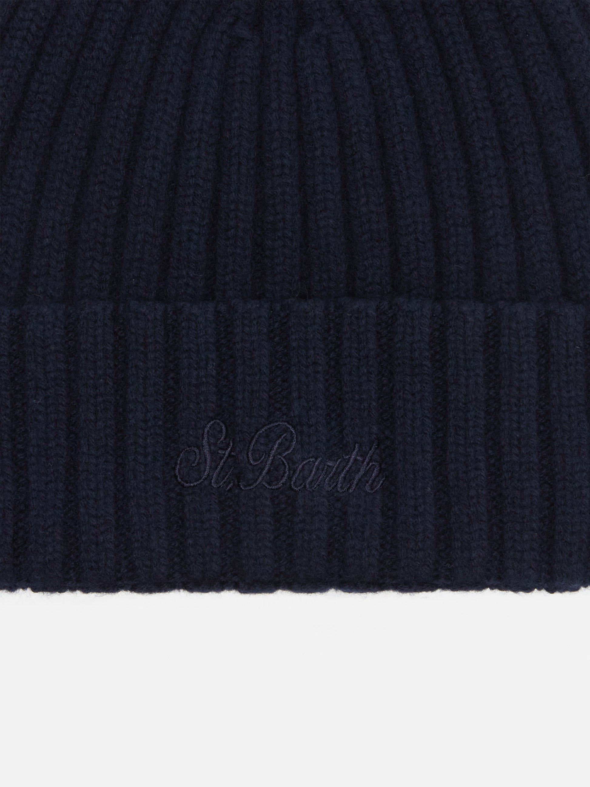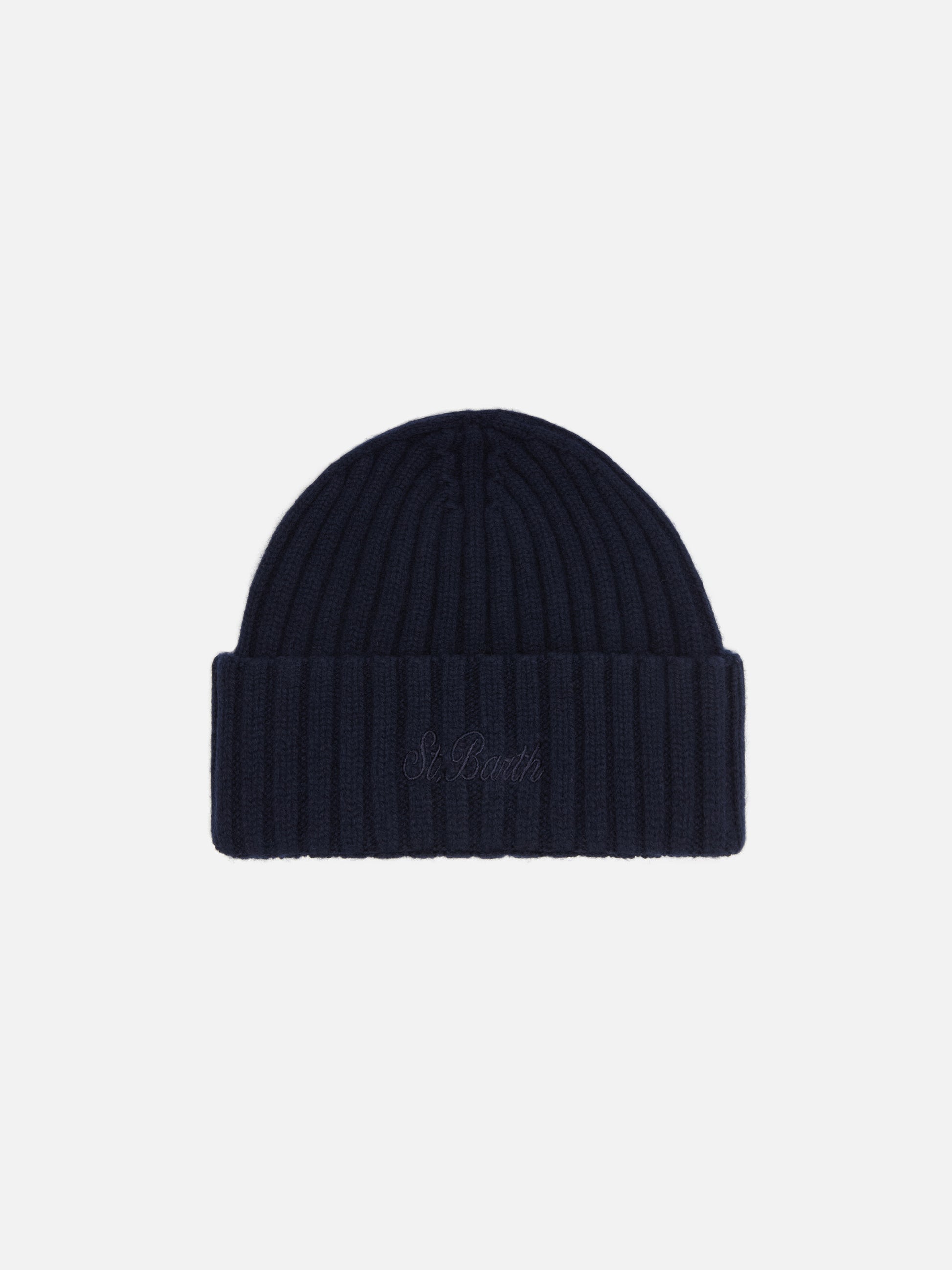 Wengen beanie in navy blue with St. Barth embroidery on the turn-up