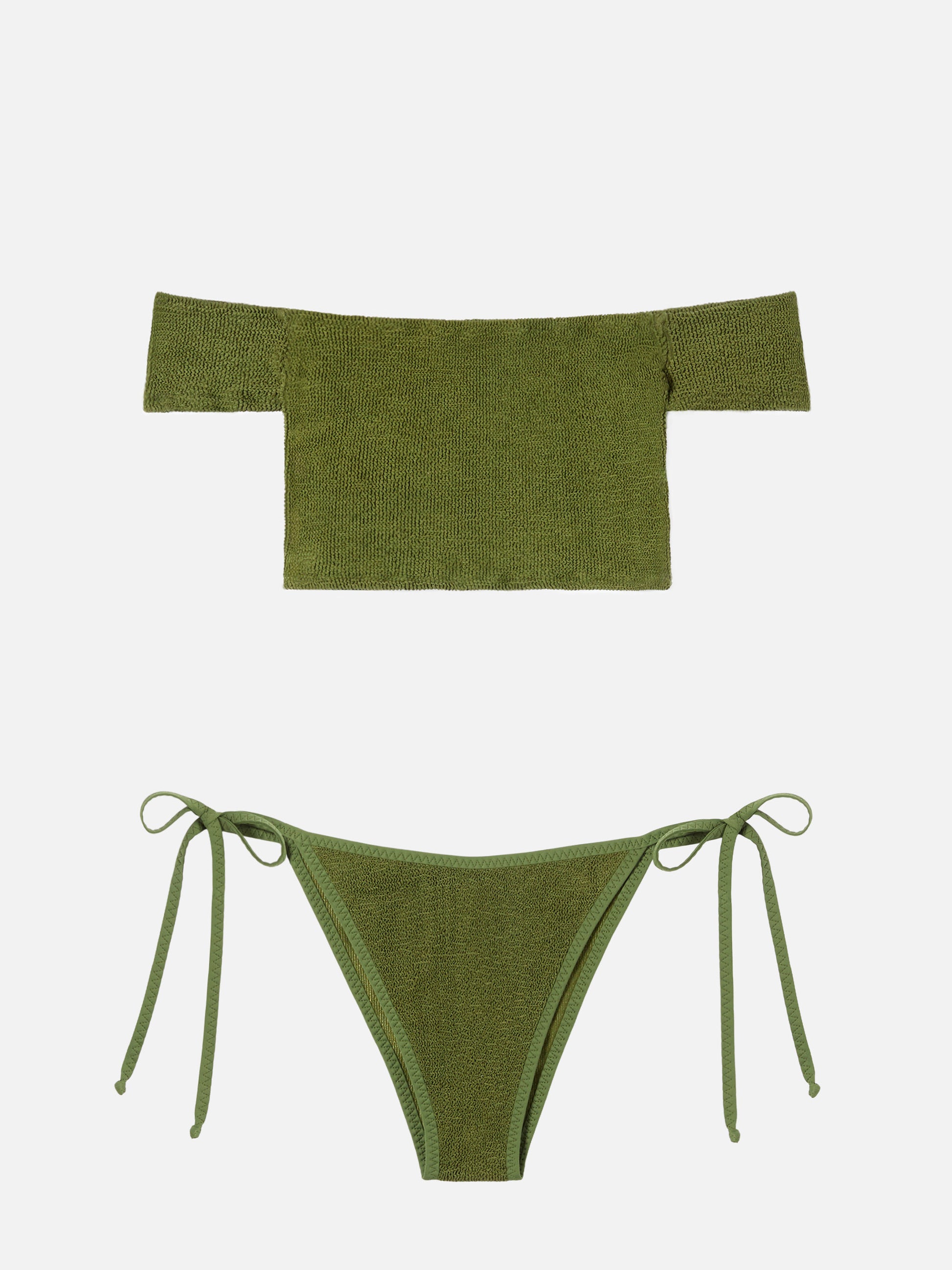 Wide shoulder strap bikini Zena Marielle in military green crinkle
