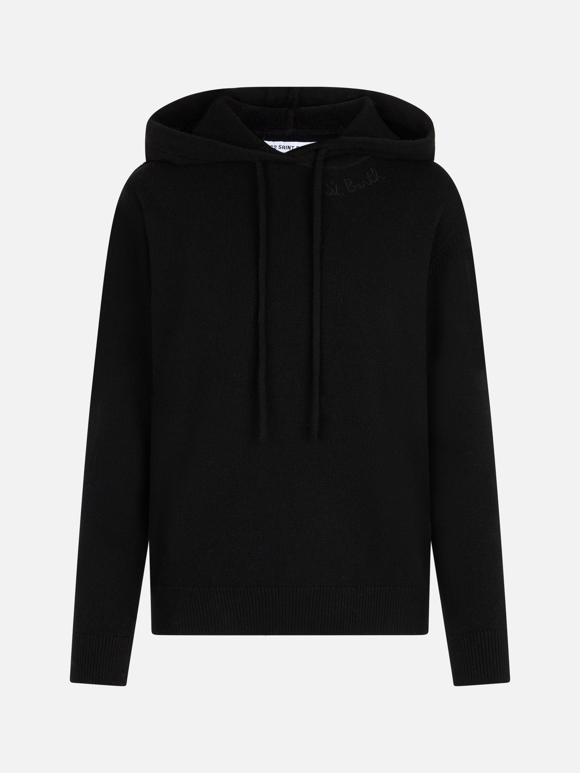 Woman black knitted hoodie with St. Barth embroidery