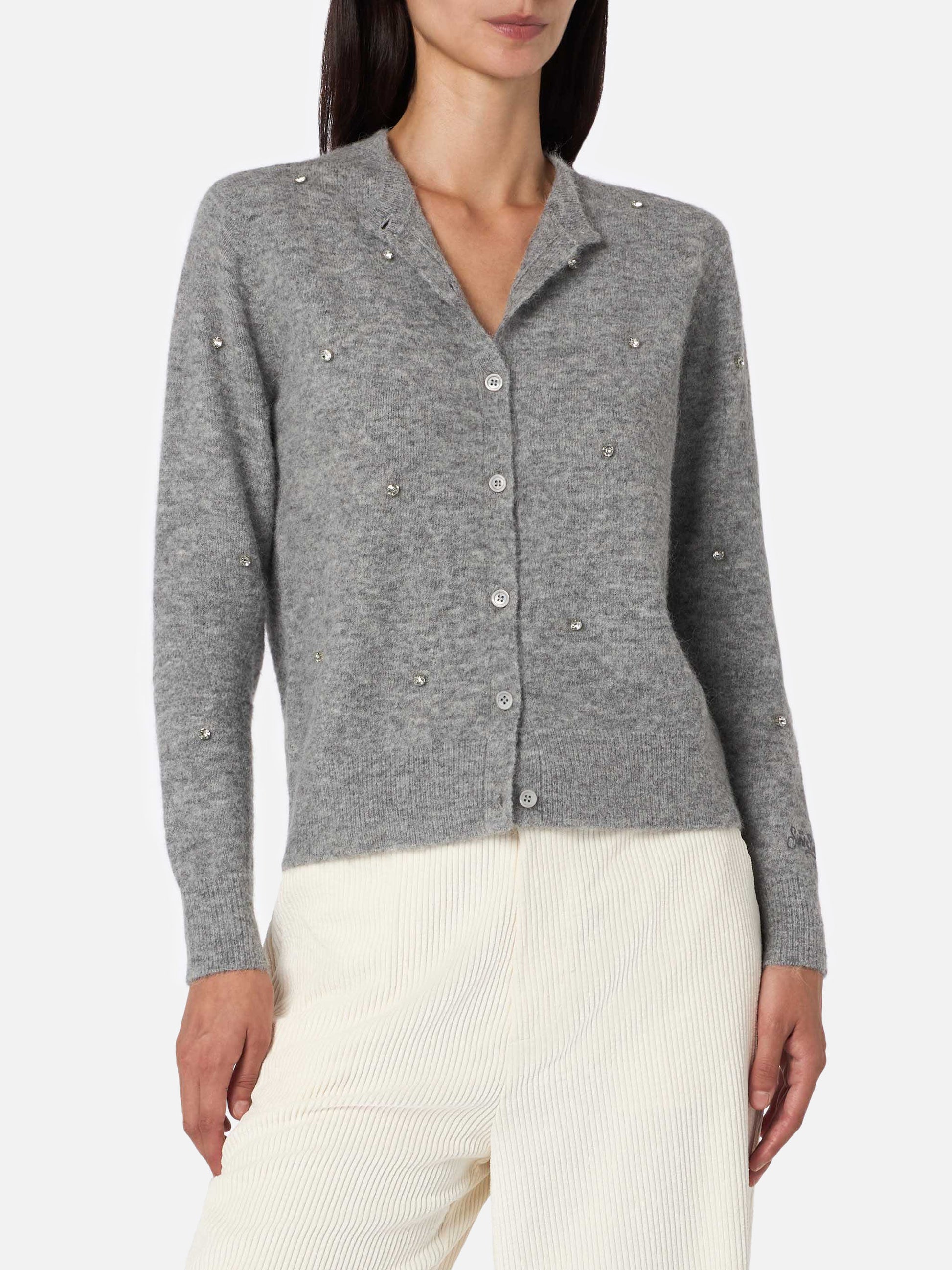 Woman grey cardigan Bellamy with silver rhinestones